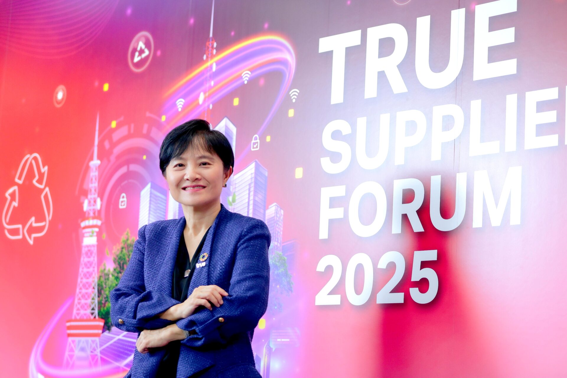 ดร.เนตรชนก วิภาตะศิลปิน หัวหน้าสายงานด้านความยั่งยืนองค์กร บมจ.ทรู คอร์ปอเรชั่น กล่าวว่า “ 'คู่ค้า’ คือแรงขับเคลื่อนสำคัญในภารกิจลดการปล่อยก๊าซเรือนกระจกตลอดทั้งห่วงโซ่อุปทาน หรือใน Scope 3 ตามหลักการ Science Based Targets initiative (SBTi) อันจะพาเราทุกคนไปสู่เป้าหมาย Net Zero ภายในปี 2593 อย่างมั่นคงและเป็นรูปธรรม ทรู คอร์ปอเรชั่น จึงมุ่งสร้างระบบนิเวศแห่งความยั่งยืนที่เติบโตไปพร้อมกับพันธมิตรในทุกมิติอย่างต่อเนื่อง เฉพาะในปี 2568 มีคู่ค้ากว่า 100 ราย ซึ่งทุกบริษัทผ่านการประเมินด้าน ESG ครบ 100% และจากผลสำรวจกลุ่มพันธมิตรหลัก (High Spending) พบว่า กว่า 50% ของคู่ค้าให้ความสนใจในเรื่อง Green Financing Program ผนวกกับความพร้อมของทรูที่มีแพลตฟอร์ม “GHG (Greenhouse Gas) Emissions Data Platform and Consulting Service” ซึ่งเป็นเครื่องมือสำคัญในการสนับสนุนพันธมิตร พิชิตเป้าหมาย Net Zero ทรู จึงได้ร่วมมือกับพันธวณิชและทีเอ็มบีธนชาต เปิดตัว “Green Financing Program” เป็นครั้งแรกในเอเชีย เพื่อสร้างโอกาสให้พันธมิตรเข้าถึงแหล่งเงินทุนสีเขียวได้ง่ายขึ้น สนับสนุนให้คู่ค้าทรูได้ดำเนินโครงการด้านสิ่งแวดล้อมและพลังงานทางเลือก รวมถึงเข้าถึงสินเชื่อพิเศษที่เชื่อมโยงกับผลลัพธ์ด้านความยั่งยืนที่ตั้งไว้ร่วมกัน ทั้งนี้ มั่นใจว่าโมเดลนี้จะไม่เพียงเสริมศักยภาพให้คู่ค้าพร้อมรับกับแนวโน้มธุรกิจสีเขียว และความต้องการของผู้บริโภคที่ให้ความสำคัญกับสิ่งแวดล้อมเท่านั้น แต่ยังตอบโจทย์นักลงทุนที่มุ่งเน้นการลงทุนด้าน Decarbonization นำพาห่วงโซ่อุปทานของทรูเติบโตอย่างแข็งแกร่งและยั่งยืนไปด้วยกัน”