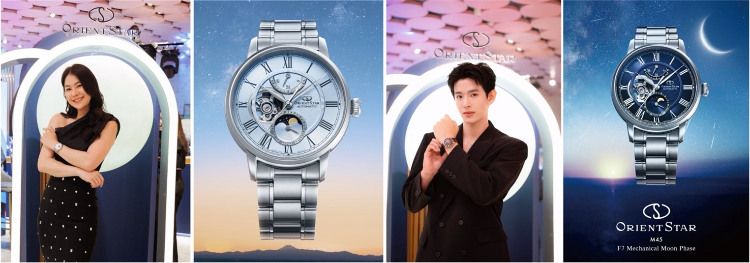 แบรนด์นาฬิกาโอเรียนท์ สตาร์ (ORIENT STAR) ได้จัดงานเปิดตัวเรือนเวลาคอลเลคชั่นคลาสสิก M45 ใหม่ล่าสุดในซีรีส์ Moon Phase Mechanical ถึง 2 คอลเลคชั่นด้วยกันโดยใช้ชื่องานว่า “Orient Star The Moon Charisma” หรือมนต์เสน่ห์แห่งดวงจันทร์และดวงดาว ซึ่งถือเป็น Exclusive Timepiece และเป็นการเปิด Pop Up Orient Star ครั้งแรกในประเทศไทยภายในงาน Central International Watch Fair 2025 ณ บริเวณโซนนาฬิกา ชั้น 2 โดยจัดงานครั้งนี้ได้รับเกียรติจากท่านผู้บริหารระดับสูงคือคุณยุทธพล ตันติวงษากิจ กรรมการผู้จัดการ ยูไนเต็ดกรุงทองเทรดดิ้ง (UKT) ผู้แทนจำหน่ายนาฬิกาโอเรียนท์ สตาร์ แต่ผู้เดียวในประเทศไทย และคุณคม สัจจวโรดม ผู้จัดการแบรนด์โอเรียนท์ สตาร์ กับคณะผู้บริหารเข้าร่วมงานได้ให้การต้อนรับบรรดาแขกผู้มีเกียรติและคณะสื่อมวลชนทุกท่านที่เข้าร่วมงานในครั้งนี้ ซึ่งการจัดงานยังได้รับเกียรติจาก คุณมิ้นท์ อรชพร ชลาดล ผู้ประกาศข่าวไทยรัฐทีวี มาเป็นพิธีกรในงาน