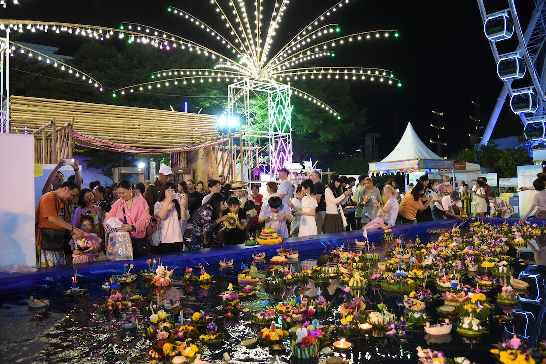 นายนิติกร กรัยวิเชียร ผอ.โครงการส่งเสริมศิลปวัฒนธรรม บริษัท ไทยเบฟเวอเรจ จำกัด (มหาชน) เปิดเผยว่า การจัดงานในปีนี้ ไทยเบฟยังคงให้ความสำคัญกับการดำเนินงานเพื่อความยั่งยืนในทุกมิติ ทั้งด้านสิ่งแวดล้อม ผ่านแนวคิด “บ่อลอยรักษ์โลก” ลดขยะจากกระทงและส่งเสริมการใช้วัสดุเป็นมิตรต่อสิ่งแวดล้อม ด้านสังคม ด้วยการทำงานร่วมกับชุมชน ส่งเสริมสินค้าชุมชน และการท่องเที่ยวโดยชุมชน