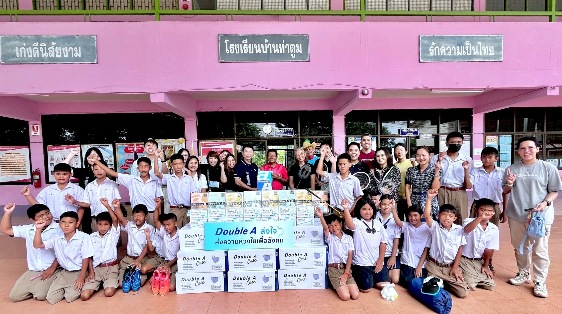 นายชาญวิทย์ จารุสมบัติ กรรมการบริษัทและรองกรรมการผู้จัดการใหญ่ ด้านการสื่อสารและภาพลักษณ์องค์กร ดั๊บเบิ้ล เอ เป็นตัวแทนมอบอุปกรณ์เครื่องเขียนสำหรับการเรียนการสอนภายใต้แบรนด์ Double A ให้กับโรงเรียนอนุบาลเมืองอ่างทอง(วัดท้องคุ้งตั้งตรงจิตร 3) อาทิ สมุด ปากกา
