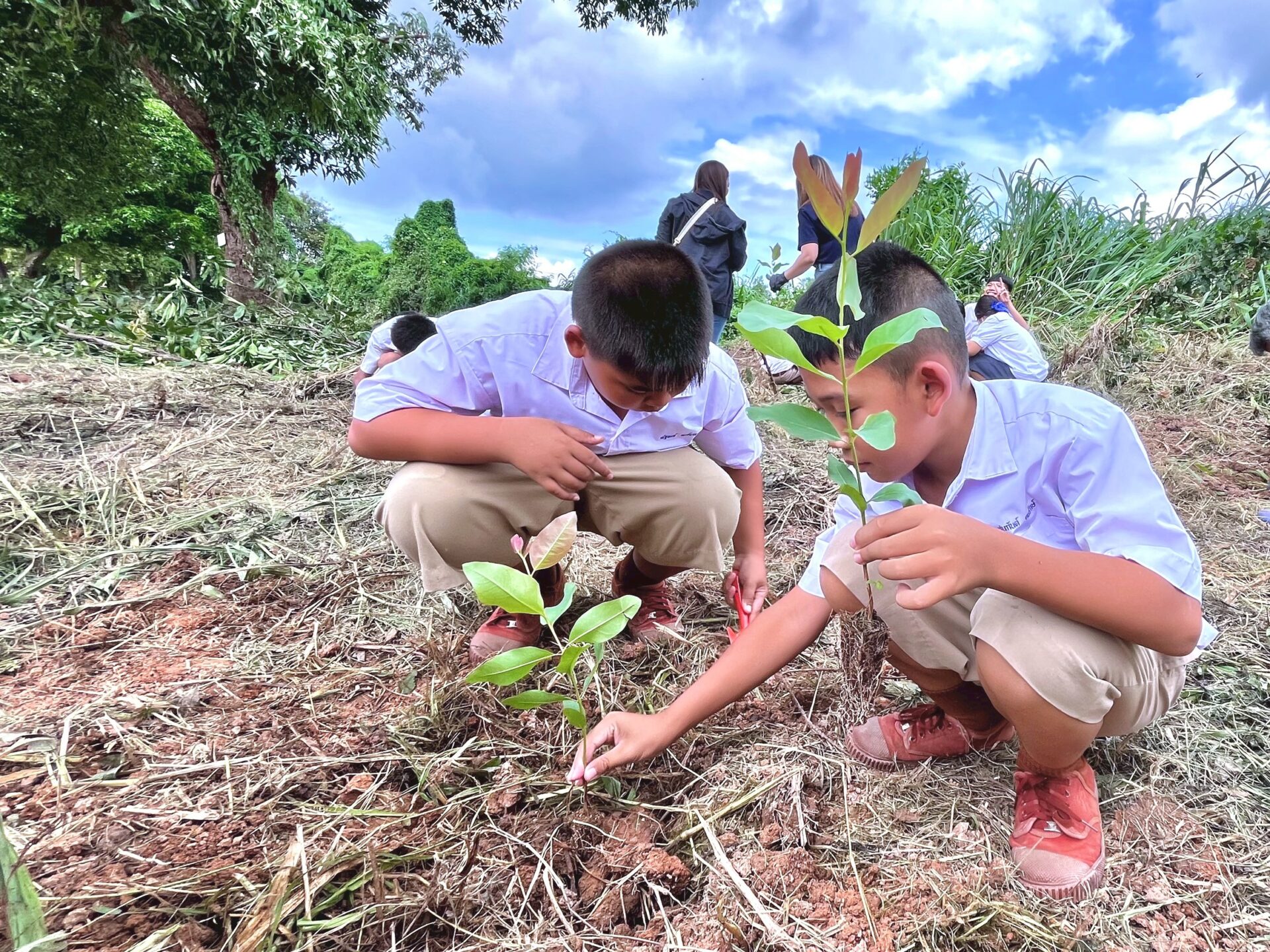 นอกจากนี้ ทุกท่านที่เยี่ยมชมยังได้ร่วมกิจกรรม “ปลูกต้นกระดาษเพื่อทุนการศึกษา” ให้กับน้อง ๆ โรงเรียนบ้านท่าตูม จังหวัดปราจีนบุรี โดยต้นกล้าทุกต้นที่ปลูกในกิจกรรมจะเติบโตเป็นทุนการศึกษาต่อไปในอนาคต และที่พิเศษคือ ทาง One Bangkok ได้นำปุ๋ยหมักชีวภาพที่ผลิตจากเศษอาหารภายในโครงการ มามอบให้ใช้บำรุงต้นกล้ากระดาษในโครงการดังกล่าว เพื่อให้เติบโตและเป็นสัญลักษณ์ของการจัดการสิ่งเหลือใช้สู่การสร้างอนาคตที่ดีกว่า สอดคล้องกับที่ดั๊บเบิ้ล เอ ให้ความสำคัญเรื่อง "No Waste is Wasted" พร้อมกันนี้ ยังได้ร่วมมอบอุปกรณ์การเรียน และหน้ากากอนามัย Double A Care ใช้สำหรับป้องกันการแพร่ระบาดของเชื้อโรคในช่วงที่สภาพอากาศแปรปรวนให้กับน้อง ๆ เพื่อสุขอนามัยที่ดีอีกด้วย กิจกรรมในครั้งนี้ ถือเป็นการผสานพลังความร่วมมือระหว่างภาคธุรกิจและชุมชนในการสร้างคุณค่ากลับคืนสู่สังคมอย่างเป็นรูปธรรม