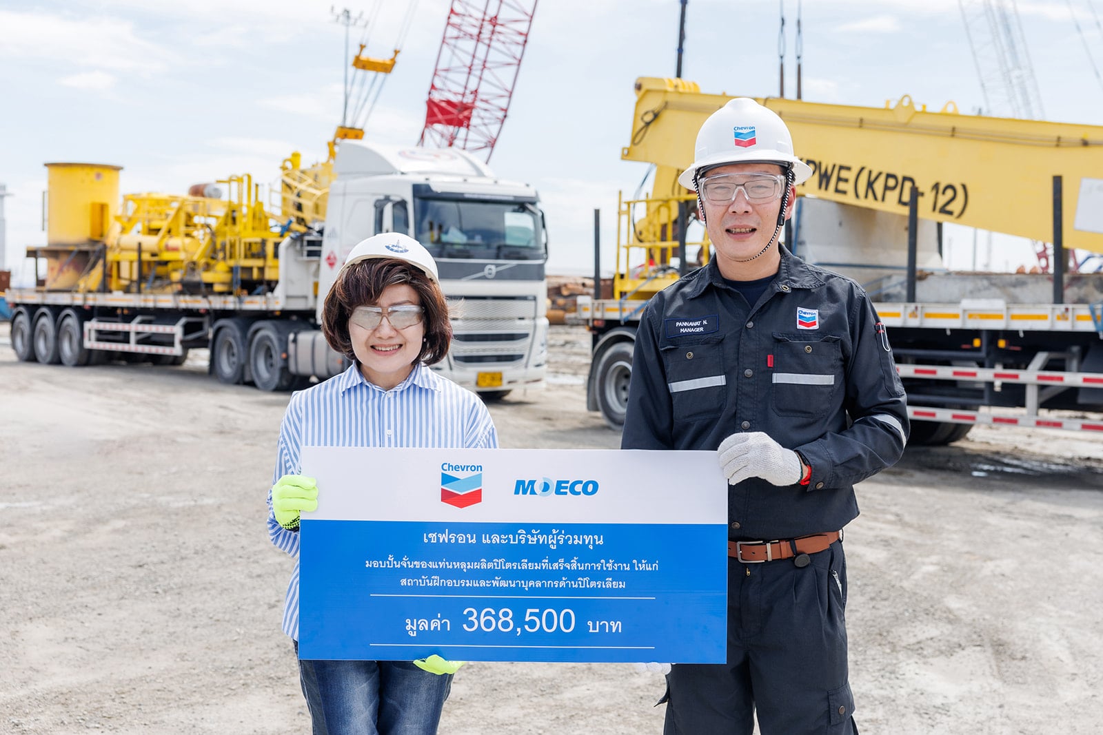 เมื่อเร็วๆ นี้ บริษัท เชฟรอนประเทศไทยสำรวจและผลิต จำกัด โดย นางสาวพรสุรีย์ กอนันทา รองประธานกรรมการบริหาร ฝ่ายกิจการองค์กร (ขวา) เป็นตัวแทนมอบงบประมาณสนับสนุนจำนวน 5,000,000 บาท