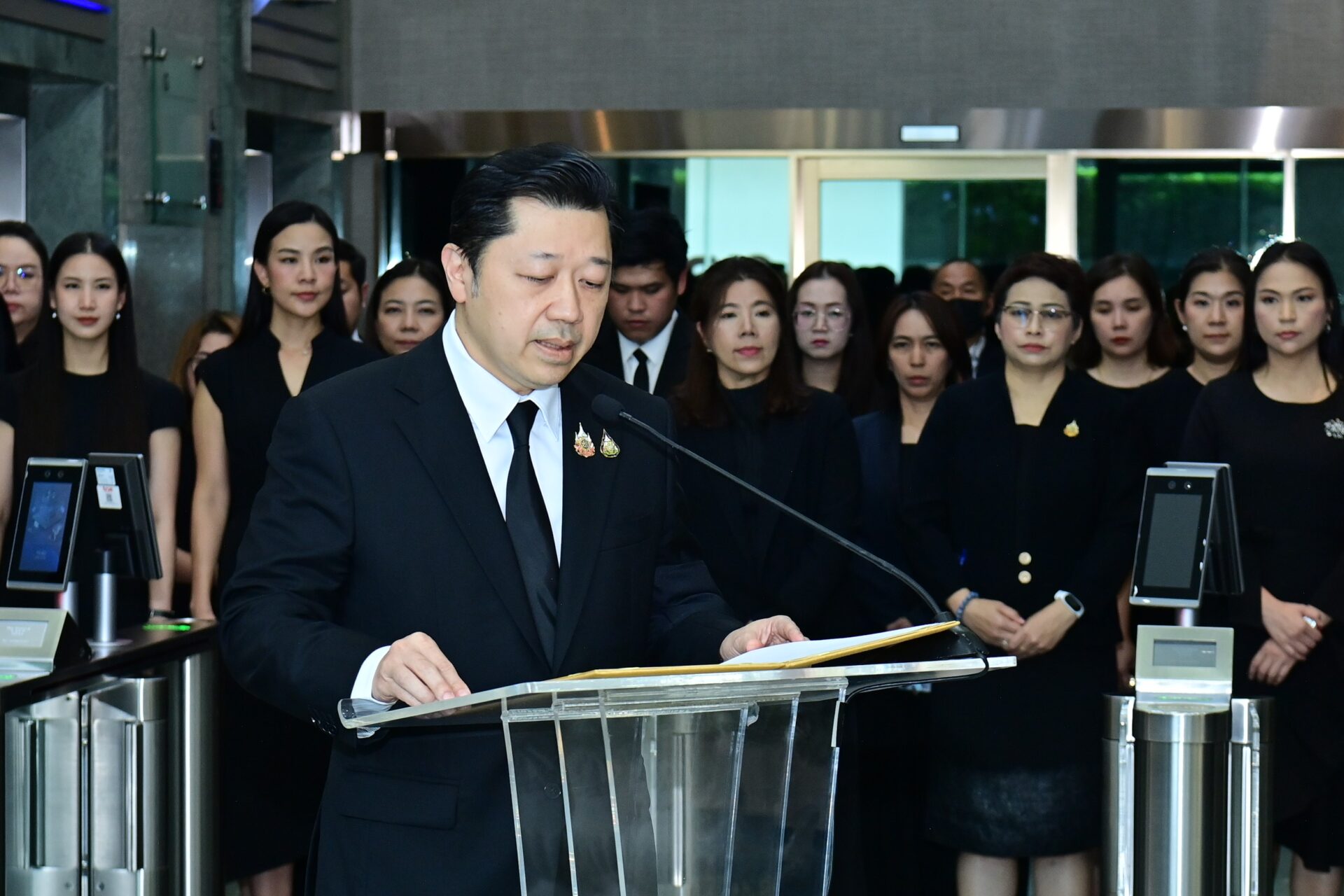 ทั้งนี้ ผู้บริหารและพนักงานเครือเจริญโภคภัณฑ์ พร้อมบริษัทในเครือทั่วโลก ได้ร้อยดวงใจร่วมประกอบพิธีแสดงความอาลัยอย่างพร้อมเพรียง เริ่มจาก กลุ่มเกษตรอุตสาหกรรมและอาหาร นำโดย บริษัท เจริญโภคภัณฑ์อาหาร จำกัด (มหาชน) จัดพิธีถวายอาลัยครอบคลุมหน่วยงานและโรงงานในหลายพื้นที่ทั่วประเทศ โดยมีศูนย์กลางที่อาคารซีพีทาวเวอร์สีลม สำนักงานซีพีตรอกจันทร์ โรงงานผลิตอาหารกุ้งบ้านพรุ อำเภอหาดใหญ่ จังหวัดสงขลา โรงงานซีพี–เมจิ จังหวัดสระบุรี บริษัท ซีพีเอฟ ฟู้ด แอนด์ เบฟเวอร์เรจ จำกัด โรงงานอาหารสำเร็จรูป จังหวัดสระบุรี บริษัท อินเตอร์เนชั่นแนล เพ็ท ฟู้ด จำกัด โรงงานผลิตอาหารสัตว์เลี้ยง จังหวัดสระบุรี โรงงานผลิตอาหารสัตว์ จังหวัดขอนแก่น โรงงานผลิตอาหารสัตว์บก ศรีราชา โรงงานแปรรูปเนื้อไก่ จังหวัดสระบุรี โรงงานผลิตอาหารสัตว์น้ำ หนองแค โรงงานอาหารแปรรรูปสัตว์น้ำระโนด จ.สงขลา ศูนย์วิจัยและพัฒนาอาหาร ซีพีเอฟ วังน้อย บริษัท ซีพีเอฟ ฟู้ด แอนด์ เบฟเวอร์เรจ จำกัด โรงงานอาหารสำเร็จรูป มหาชัย รวมถึงโรงงานผลิตซอส พรีมิกซ์ และเครื่องปรุง วังน้อย โรงงานผลิตอาหารสัตว์บก หนองแค จังหวัดสระบุรี โรงงานผลิตภัณฑ์อาหารสัตว์บก จังหวัดราชบุรี โรงงานผลิตอาหารสัตว์ กบินทร์บุรี และโรงงานแปรรูปเนื้อไก่ จังหวัดนครราชสีมา ในส่วนของธุรกิจเป็ดเนื้อ ได้จัดกิจกรรม ณ โรงงานแปรรูปเนื้อเป็ด บางนา สำนักงานฟาร์มเป็ดพันธุ์และโรงฟัก มวกเหล็ก สำนักงานฟาร์มเป็ดเนื้อ ออฟฟิศพนมสารคาม และโรงงานผลิตอาหารสัตว์ ปักธงชัย เป็นต้น