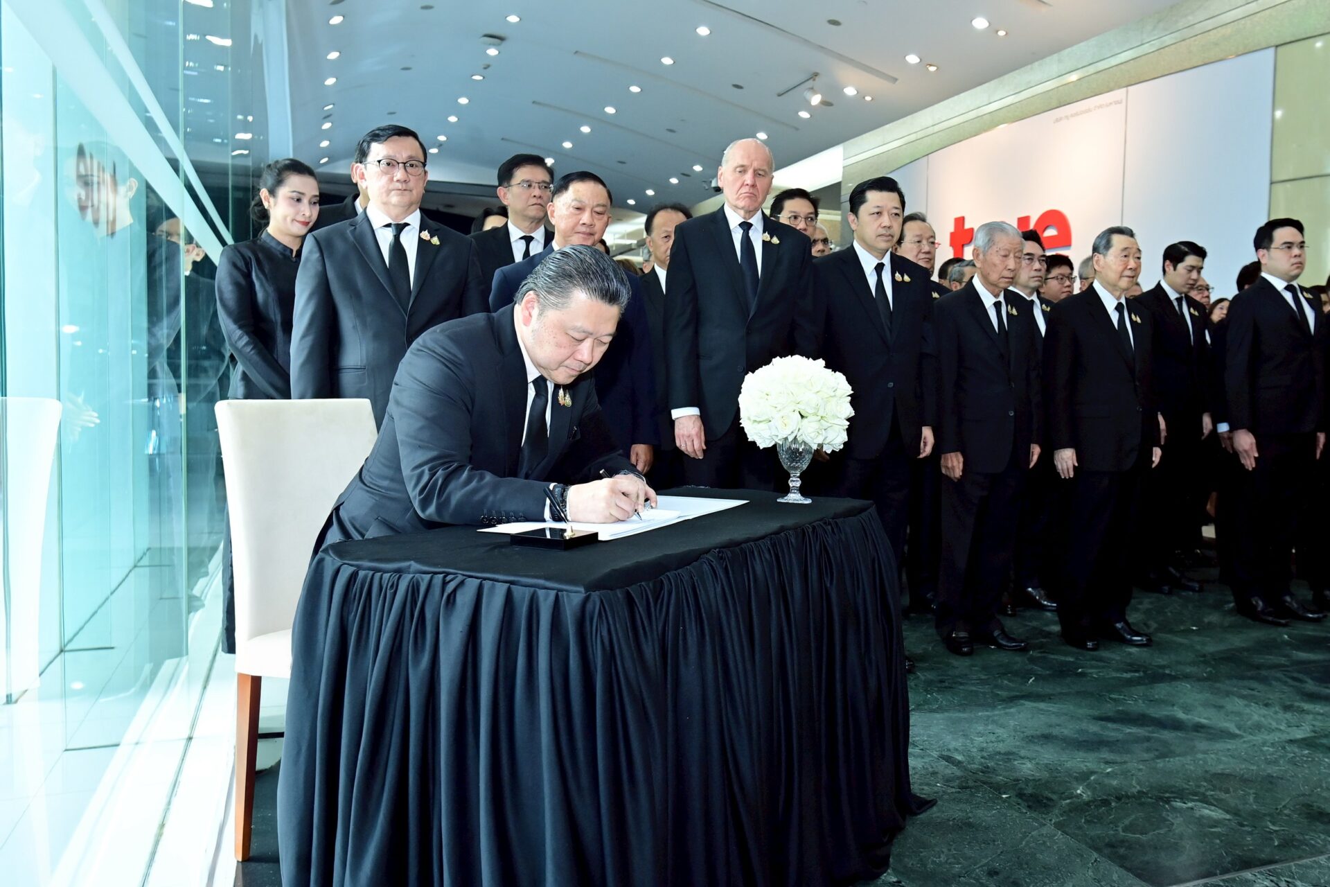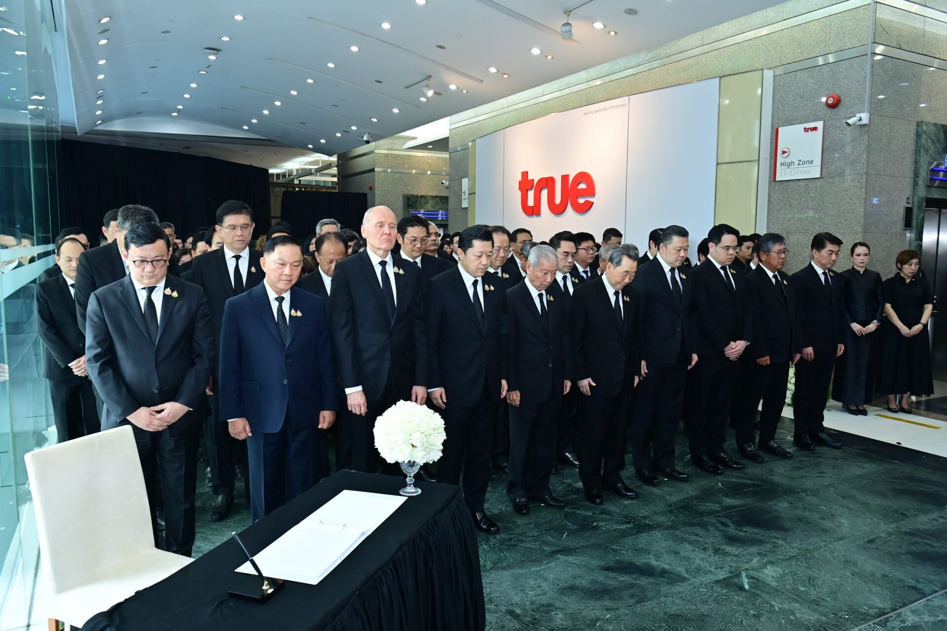 บรรยากาศในพิธีฯที่ผู้บริหารและพนักงานร่วมน้อมจิตถวายความอาลัยต่อ “แม่แห่งแผ่นดิน” ณ อาคารทรู ทาวเวอร์ เป็นไปด้วยความสงบ สง่างาม และเปี่ยมด้วยความรู้สึกซาบซึ้งในพระมหากรุณาธิคุณ โดยมีการถ่ายทอดสดไปยังสำนักงานและหน่วยงานของเครือฯ ทั่วประเทศและทั่วโลก เพื่อเปิดโอกาสให้พนักงานกว่า400,000 คนทั่วโลกได้ร่วมถวายความอาลัยพร้อมกัน