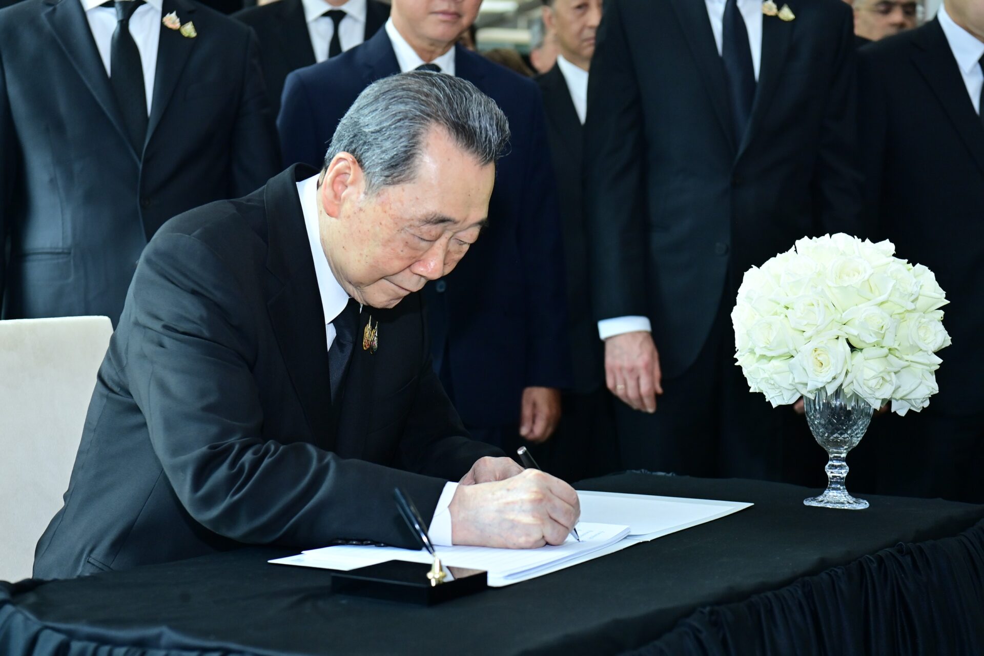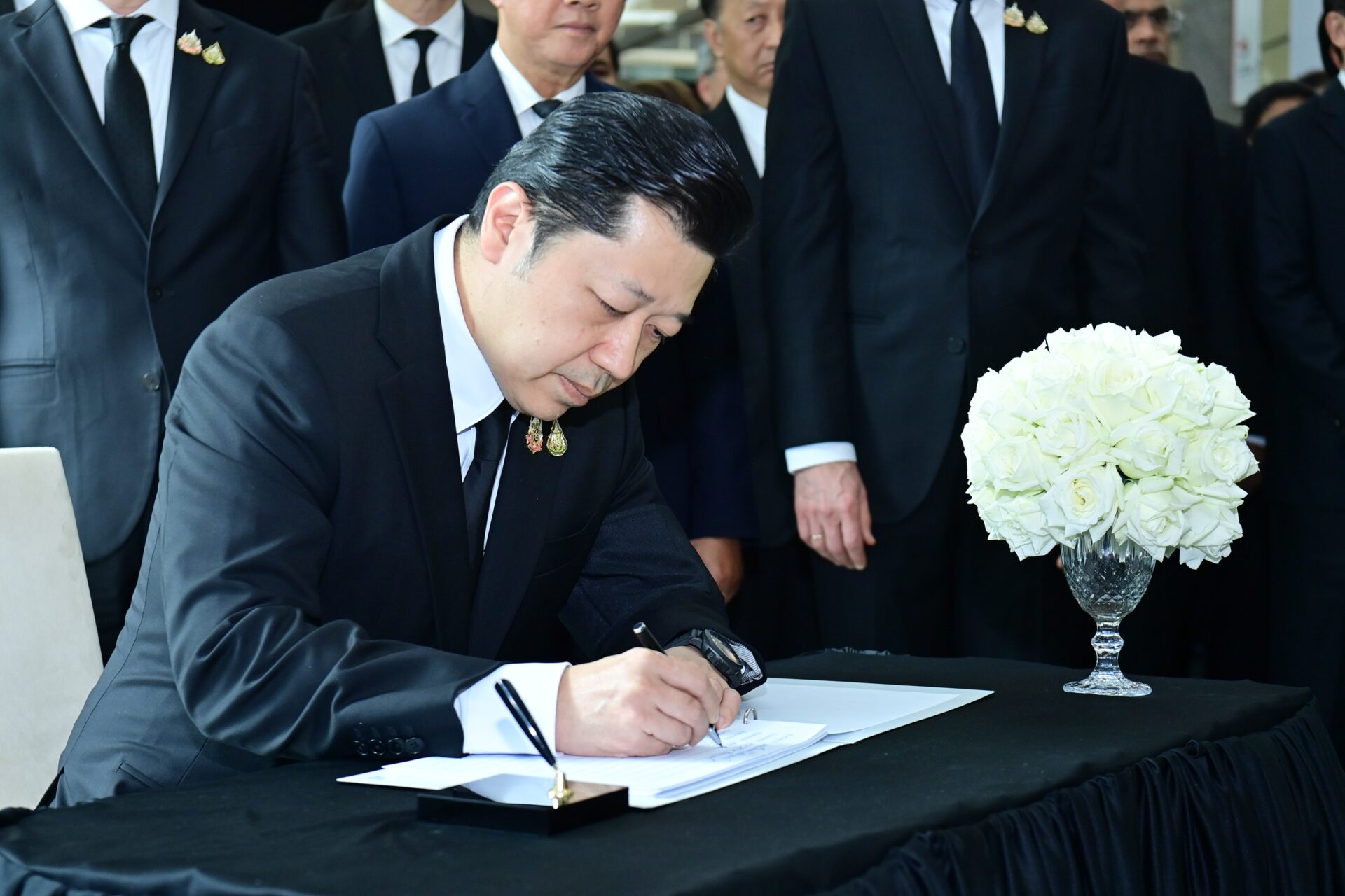 ภายหลังการอ่านบทร้อยกรองแห่งความอาลัย นายธนินท์ เจียรวนนท์, นายสุภกิต เจียรวนนท์ และนายศุภชัย เจียรวนนท์ พร้อมคณะผู้บริหารและพนักงานเครือเจริญโภคภัณฑ์ ได้ร่วมน้อมยืนสงบนิ่งถวายความอาลัยเป็นเวลา 1 นาที ก่อนร่วมลงนามถวายอาลัยต่อหน้าพระฉายาลักษณ์ สมเด็จพระนางเจ้าสิริกิติ์ พระบรมราชินีนาถ พระบรมราชชนนีพันปีหลวง ท่ามกลางบรรยากาศอันสงบ สง่างาม และเปี่ยมด้วยความสำนึกในพระมหากรุณาธิคุณ