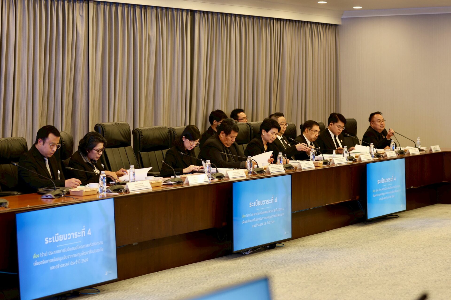 (30 ตุลาคม 2568) เวลา 13.30 น. นางสาวศุภมาส อิศรภักดี รัฐมนตรีประจำสำนักนายกรัฐมนตรี ปฏิบัติราชการแทนนายกรัฐมนตรี ในฐานะประธานกรรมการกองทุนพัฒนาสื่อปลอดภัยและสร้างสรรค์ เป็นประธานการประชุมคณะกรรมการกองทุนพัฒนาสื่อปลอดภัยและสร้างสรรค์ ครั้งที่ 4/2568 พร้อมด้วย นางสาวซาบีดา ไทยเศรษฐ์ รัฐมนตรีว่าการกระทรวงวัฒนธรรม รองประธานกรรมการกองทุนฯ นายประสพ เรียงเงิน ปลัดกระทรวงวัฒนธรรม ประธานอนุกรรมการบริหารกองทุนฯ นายธนกร ศรีสุขใส ผู้จัดการกองทุนฯ พร้อมคณะกรรมการ ผู้บริหารและเจ้าหน้าที่กองทุนพัฒนาสื่อปลอดภัยและสร้างสรรค์ เข้าประชุม ณ ห้องประชุม 301 ตึกบัญชาการ 1 ชั้น 3 ทำเนียบรัฐบาล