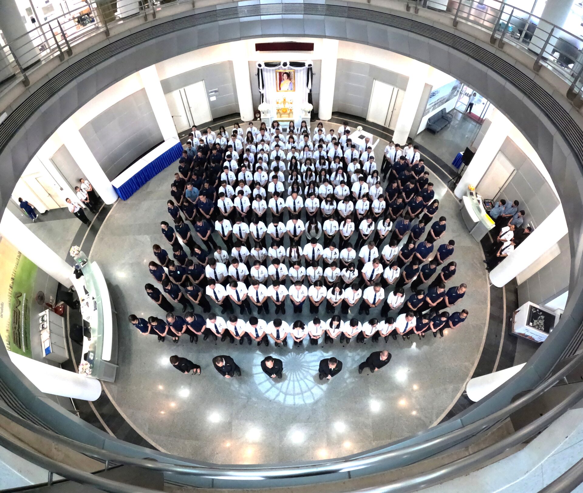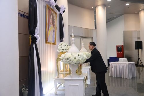 ในโอกาสนี้ ดร.สมบัติ กิจจาลักษณ์ ได้วางพวงมาลัยถวายความอาลัยเบื้องหน้าพระฉายาลักษณ์ จากนั้นผู้แทนผู้บริหารและพนักงานได้กล่าวถวายความอาลัย พร้อมยืนสงบนิ่งเพื่อแสดงความจงรักภักดี และน้อมรำลึกในพระมหากรุณาธิคุณอันหาที่สุดมิได้