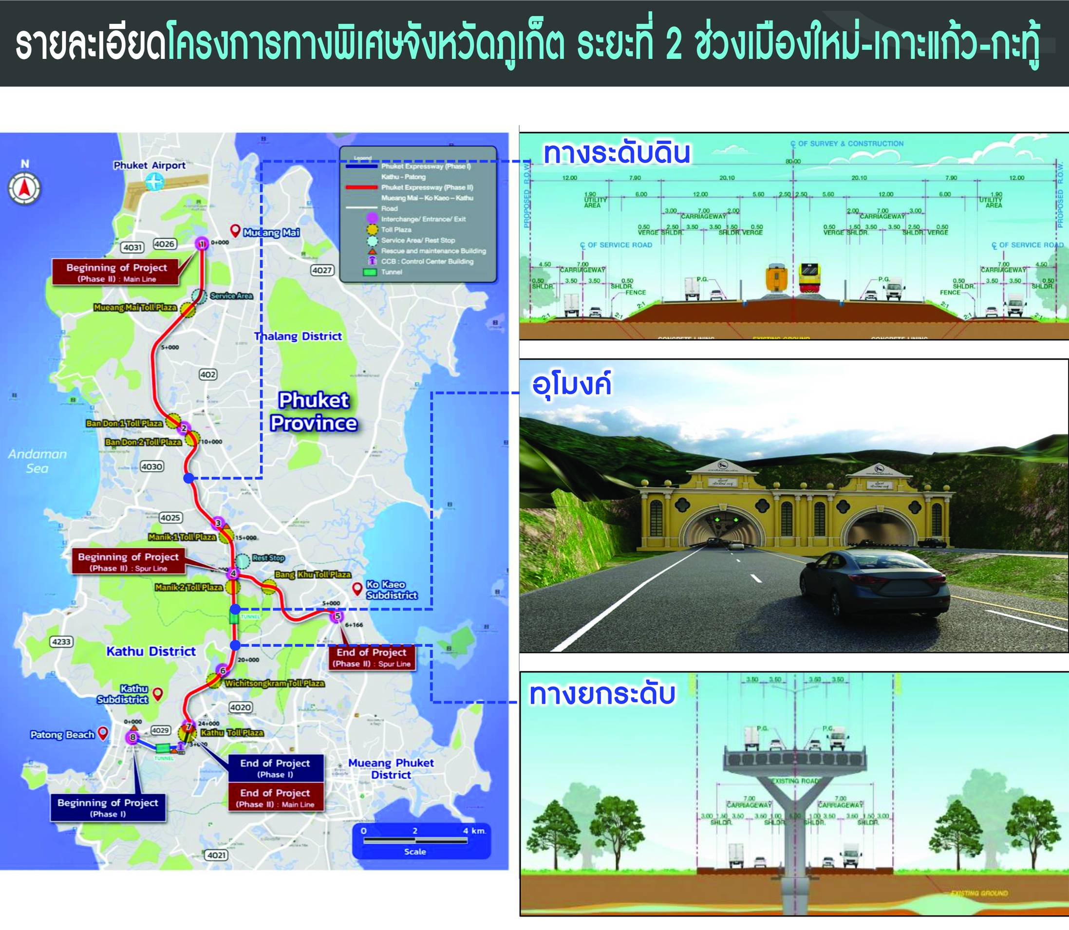 นายพิพัฒน์ กล่าวอีกว่า โครงการดังกล่าว เป็นการพัฒนาโครงสร้างพื้นฐานเพื่อเชื่อมโยงระบบคมนาคมของจังหวัดภูเก็ตอย่างครบวงจร โดย การทางพิเศษแห่งประเทศไทย (กทพ.) เป็นหน่วยงานดำเนินการ ซึ่งโครงการแบ่งออกเป็น 2 ระยะ คือ ระยะที่ 1 ช่วงกะทู้–ป่าตอง ระยะทางประมาณ 3.98 กิโลเมตร ระยะที่ 2 ช่วงเมืองใหม่–เกาะแก้ว–กะทู้ ทางยกระดับต่อเนื่อง ระยะทางประมาณ 30.6 กิโลเมตร ซึ่งโครงการผ่านการศึกษาความเป็นไปได้และรายงานผลกระทบสิ่งแวดล้อม (EIA) แล้วตั้งแต่ปี 2565 ซึ่งเป็นโครงการสมัยนายศักดิ์สยาม ชิดชอบ เป็นรัฐมนตรีว่าการกระทรวงคมนาคม โดยมีเป้าหมายเพื่อแก้ปัญหาการจราจรติดขัด และลดอุบัติเหตุที่เกิดขึ้นบ่อยครั้งบนเส้นทางหลักเชื่อมสนามบินภูเก็ตกับป่าตอง