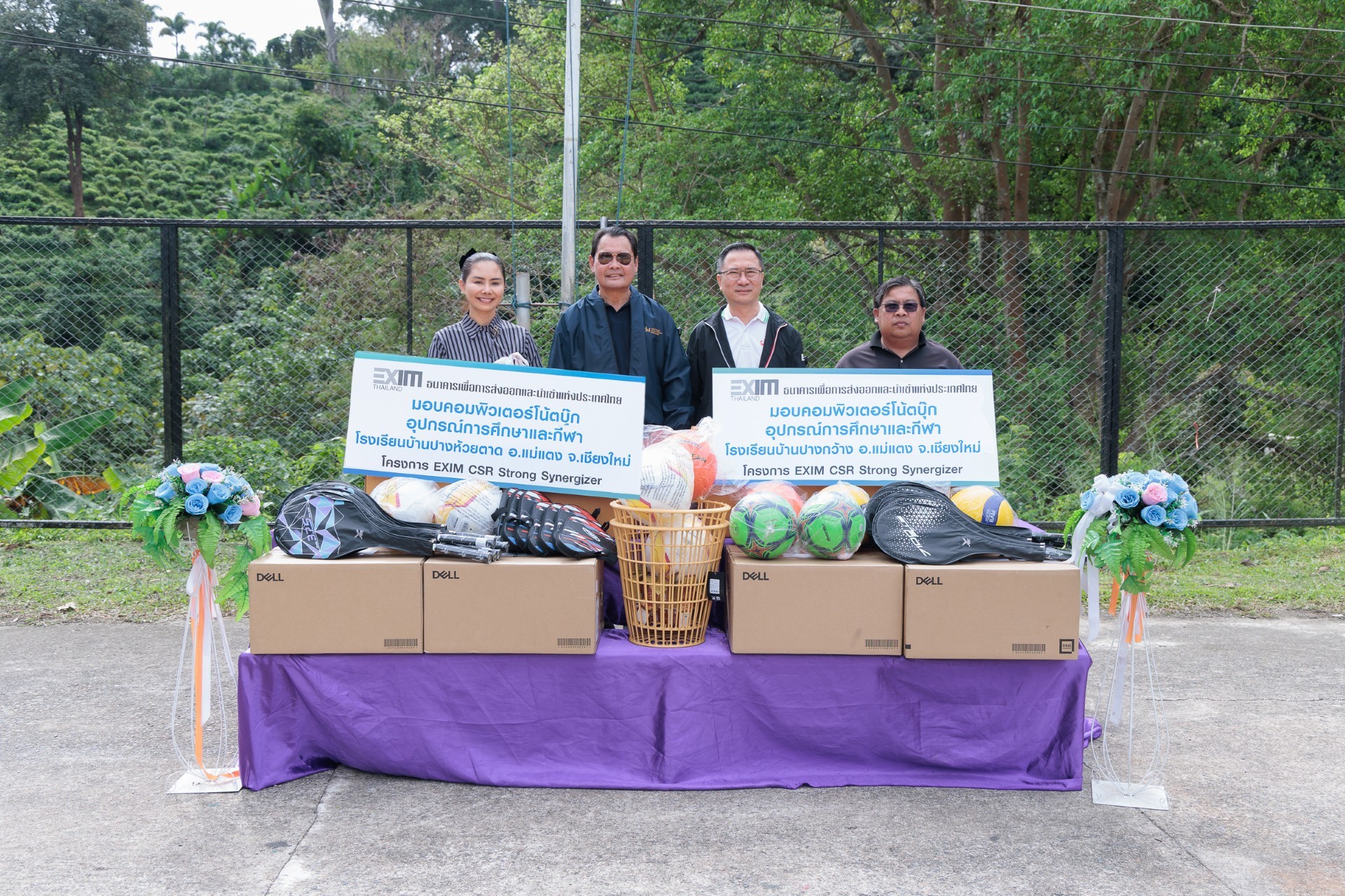 นายชลัช รัตนบุญนิธิ กรรมการผู้จัดการ ธนาคารเพื่อการส่งออกและนำเข้าแห่งประเทศไทย (EXIM BANK) และนายจักริน วังวิวัฒน์ กรรมการผู้จัดการ กลุ่มบริษัท ชาระมิงค์ จำกัด มอบเครื่องคอมพิวเตอร์โน้ตบุ๊ก อุปกรณ์การศึกษา และอุปกรณ์กีฬา ให้กับโรงเรียนบ้านปางห้วยตาด และโรงเรียนบ้านปางกว้าง อำเภอแม่แตง จังหวัดเชียงใหม่ ภายใต้โครงการ “EXIM CSR Strong Synergizer” เพื่อสนับสนุนการศึกษาและการพัฒนาคุณภาพชีวิตของเด็กและเยาวชนในพื้นที่ห่างไกล เพื่อส่งเสริมให้เด็กได้เรียนรู้อย่างเต็มศักยภาพ ควบคู่ไปกับการเล่นกีฬาและใช้เวลาว่างให้เกิดประโยชน์ โดยมีนางสาวอลินดา ศิริธีรธาดา ผู้อำนวยการโรงเรียนบ้านปางห้วยตาด และนายวิธาน บุญญา ผู้อำนวยการโรงเรียนบ้านปางกว้าง เป็นผู้รับมอบ ณ โรงเรียนบ้านปางห้วยตาด อำเภอแม่แตง จังหวัดเชียงใหม่ เมื่อวันที่ 8 พฤศจิกายน 2568.