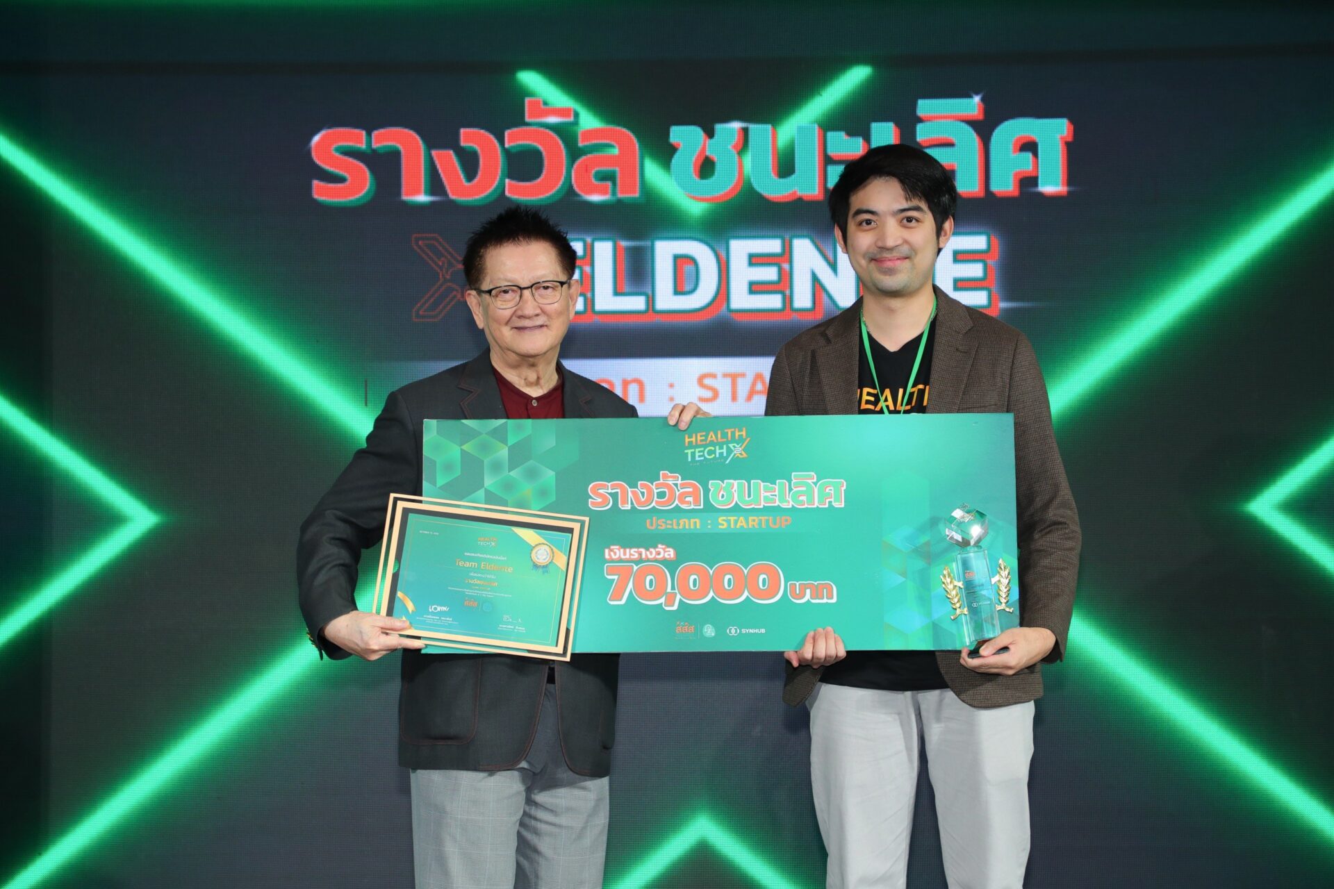 อีกหนึ่งนวัตกรรมที่ได้รับรางวัลชนะเลิศในประเภทสตาร์ทอัป คือ “Flowmind-RA” จากทีม Eldent นำโดย นพ.ลาภณวัส สันติธรรม ที่ใช้เทคโนโลยีเสียงช่วยประเมินภาวะทางเดินปัสสาวะอุดกั้นในผู้สูงอายุ ซึ่งมักเป็นปัญหาที่ถูกมองข้าม
