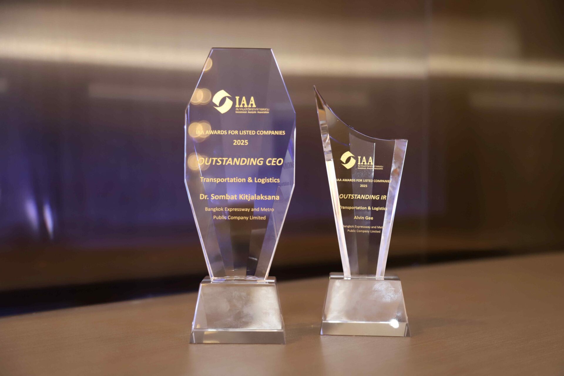 บริษัท ทางด่วนและรถไฟฟ้ากรุงเทพ จำกัด (มหาชน) หรือ BEM คว้า 2 รางวัลเกียรติยศ “Outstanding CEO และ Outstanding IR” ในกลุ่มอุตสาหกรรมขนส่งเดินทาง จากเวที IAA Awards for Listed Companies 2025 จัดโดยสมาคมนักวิเคราะห์การลงทุน (IAA) รางวัลดังกล่าวสะท้อนถึงศักยภาพและ ความเป็นเลิศของผู้บริหารและบริษัทจดทะเบียนมีศักยภาพที่โดดเด่น ในการบริหารธุรกิจตามหลักบรรษัทภิบาล พร้อมทั้งดำเนินงานด้านนักลงทุนสัมพันธ์อย่างมีประสิทธิภาพ ด้วยการสื่อสารข้อมูลที่โปร่งใส สร้างความเชื่อมั่นและความสัมพันธ์ที่ดีในระยะยาว โดยนายอัลวิน จี รองกรรมการผู้จัดการ เป็นผู้แทนรับมอบรางวัลจาก ดร.เอกนิติ นิติทัณฑ์ประภาศ รองนายกรัฐมนตรีและรัฐมนตรีว่าการกระทรวงการคลัง ณ โรงแรม อีสติน แกรนด์ พญาไท เมื่อเร็วๆนี้.