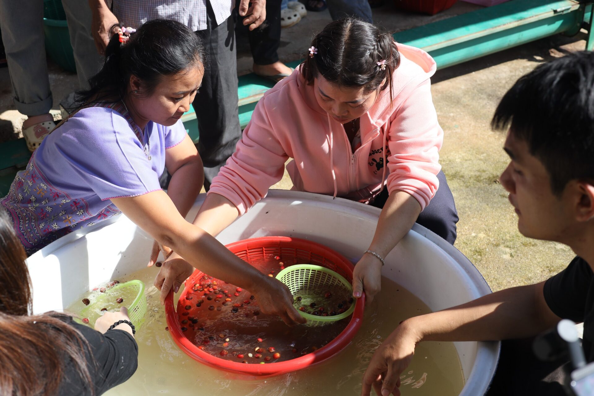 น.ส.ญาณิศา วัฒนคำนวณ ผู้อำนวยการด้านการบริหารฝ่ายกิจกรรมองค์กรเพื่อสังคม GULF กล่าวว่า “กิจกรรมนี้เกิดจากการที่กัลฟ์ได้ไปติดตั้งแผงโซลาร์เซลล์ให้กับทั้ง 2 ชุมชน ได้แก่ ชุมชนดอยเวียง และชุมชนมอโก้โพคี ซึ่งพบว่าทั้งสองชุมชนมีการปลูกกาแฟอยู่แล้ว แต่ยังขาดโรงสีกาแฟที่มีประสิทธิภาพเนื่องจากไม่มีไฟฟ้าเข้าถึง การติดตั้งโซลาร์เซลล์ช่วยให้กระบวนการสีกาแฟมีคุณภาพดีขึ้น อย่างไรก็ตาม คุณภาพกาแฟโดยรวมก็ยังไม่ดีเท่าที่ควร จึงเป็นที่มาของการพัฒนาต่อยอดโครงการในวันนี้ที่ได้พาชาวบ้านดอยเวียง และดอยมอโก้โพคี มาเรียนรู้กระบวนการทำกาแฟ ที่โครงการพัฒนาดอยตุง เพื่อส่งต่อองค์ความรู้ให้กับชุมชนได้เรียนรู้ตั้งแต่ต้นน้ำถึงปลายน้ำ เพื่อให้มีองค์ความรู้เพียงพอ ที่จะไปพัฒนาแปลงปลูกของตัวเองแล้วก็ได้คุณภาพของกาแฟที่ดียิ่งขึ้นแล้วก็ส่งผลต่อรายได้ที่มั่นคงขึ้นด้วย”