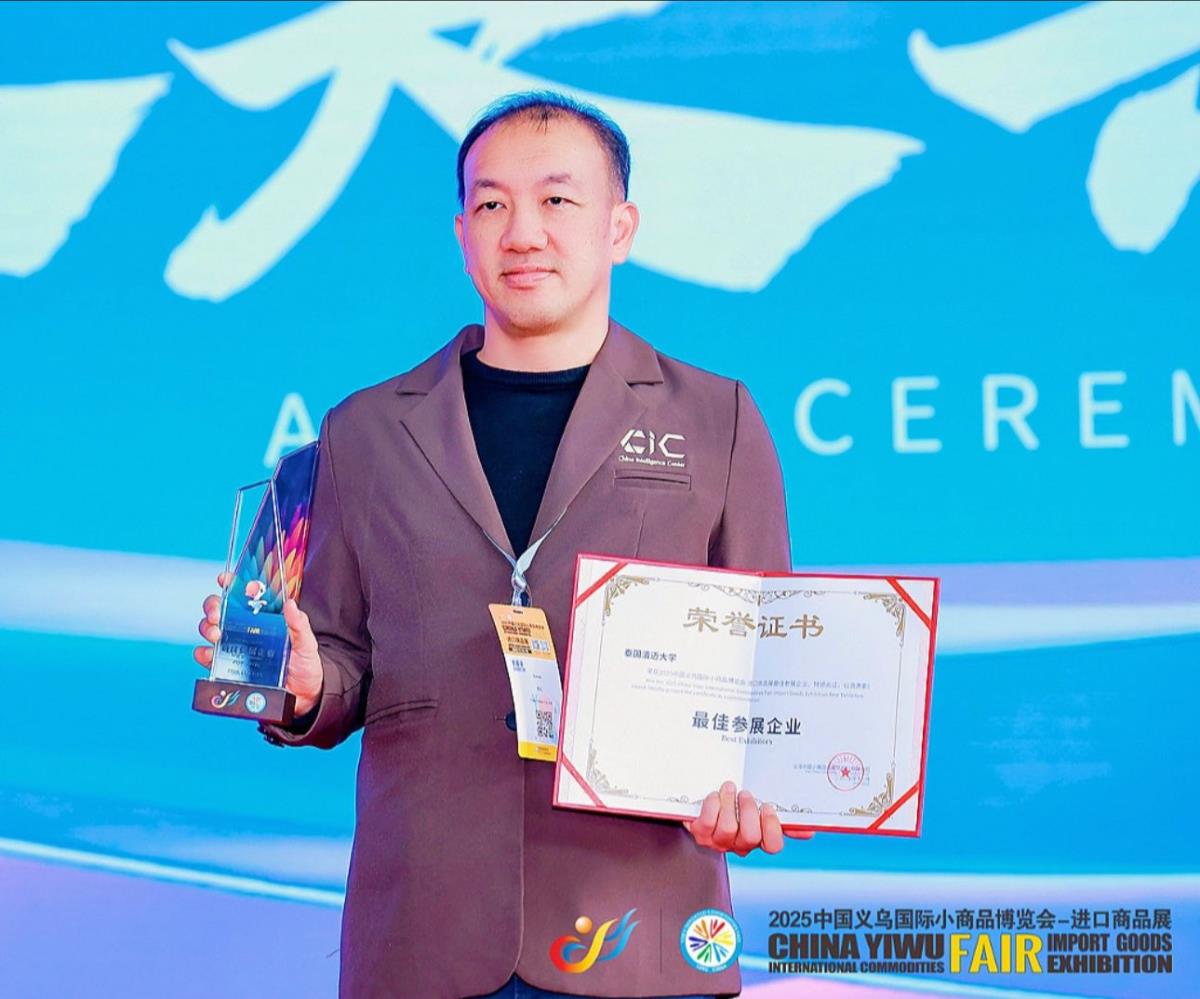 มหาวิทยาลัยเชียงใหม่ โดย ศูนย์ China Intelligence Center (CIC) วิทยาลัยศิลปะ สื่อ และเทคโนโลยี สร้างความภาคภูมิใจให้สถาบันและประเทศ ด้วยการคว้ารางวัล “Best Exhibitor Award” บนเวทีนานาชาติ ณ เมืองอี้อู ประเทศจีน จากงาน “Zhejiang International Friendship Cities Exchange Exhibition 2025” ความสำเร็จครั้งนี้ตอกย้ำบทบาทของมหาวิทยาลัยเชียงใหม่ในฐานะสถาบันชั้นนำด้านนวัตกรรมและเทคโนโลยี ที่สามารถผลักดันผลงานวิจัย สินค้านวัตกรรม และกลไก Cross Border E-Commerce ของไทยให้ก้าวไกลสู่ตลาดโลก ภายใต้โครงการที่ได้รับการสนับสนุนจากสำนักงานสภานโยบายการอุดมศึกษา วิทยาศาสตร์ วิจัยและนวัตกรรมแห่งชาติ (สอวช.)