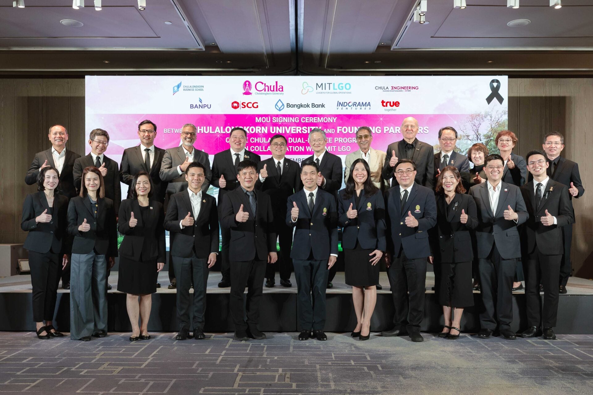 กรุงเทพฯ 21 พฤศจิกายน 2568 – สร้างมิติใหม่ ปฏิวัติวงการศึกษาไทย...จุฬาลงกรณ์มหาวิทยาลัย ร่วมกับ Massachusetts Institute of Technology (MIT) สหรัฐอเมริกา ผสานกำลังกับ 5 องค์กรธุรกิจพันธมิตรชั้นนำ ได้แก่ บริษัท ทรู คอร์ปอเรชั่น จำกัด (มหาชน), ธนาคารกรุงเทพ จำกัด (มหาชน), บริษัท ปูนซิเมนต์ไทย จำกัด (มหาชน), บริษัท อินโดรามา เวนเจอร์ส จำกัด (มหาชน) และบริษัท บ้านปู จำกัด (มหาชน) เปิดหลักสูตรปริญญาโทรูปแบบใหม่ Chula Leaders for Global Operations (Chula LGO) ซึ่งเป็นหลักสูตรสองปริญญาโท จากคณะวิศวกรรมศาสตร์ และคณะพาณิชยศาสตร์และการบัญชี โดยผู้สำเร็จการศึกษาจะได้รับปริญญา วท.ม. สาขานวัตวิศวกรรมเพื่อความยั่งยืน (Master of Science in Innovative Engineering for Sustainability) และ บธ.ม. สาขาบริหารธุรกิจมหาบัณฑิต (Master of Business Administration) พร้อมด้วยประกาศนียบัตร MIT LGO เพื่อเร่งสร้างผู้นำรุ่นใหม่เปี่ยมด้วยทักษะและศักยภาพทัดเทียมนานาชาติ อีกหนึ่งแรงขับเคลื่อนสำคัญในการพัฒนาภาคอุตสาหกรรมให้ก้าวทันโลกแห่งอนาคต และสร้างเศรษฐกิจประเทศชาติอย่างยั่งยืน โดยครั้งนี้ ศาสตราจารย์ ดร.วิเลิศ ภูริวัชร (ที่ 3 จากซ้าย) อธิการบดีจุฬาลงกรณ์มหาวิทยาลัย พร้อมด้วยผู้บริหารจาก 5 องค์กรพันธมิตร รวมถึง นายซิกเว่ เบรกเก้ (ขวา) ประธานคณะผู้บริหารกลุ่ม บริษัท ทรู คอร์ปอเรชั่น จำกัด (มหาชน) ได้ร่วมลงนามบันทึกข้อตกลงความร่วมมือ Chula LGO อย่างเป็นทางการ ณ ห้อง Yulania ชั้น 9 วอลดอร์ฟ แอสโทเรีย กรุงเทพฯ