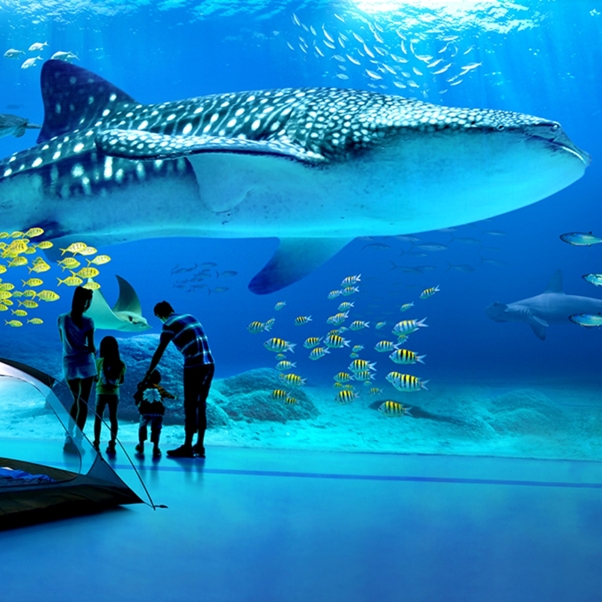 หนึ่งในไฮไลต์ที่ทุกคนต้องแวะคือ Whale Shark Exhibit ด้วยโถงน้ำขนาดมหึมาและกระจกอะคริลิกขนาดยักษ์ที่สูงจนจรดเพดาน ทำให้ผู้เข้าชมได้สัมผัสความยิ่งใหญ่ของท้องทะเลราวกับยืนอยู่ในมหาสมุทรจริง ๆ แบบหาที่อื่นเทียบยาก เด็กเล็กตื่นตาตื่นใจ ผู้ใหญ่ก็ประทับใจกับความอลังการจนลืมเวลาไปเลยทีเดียว