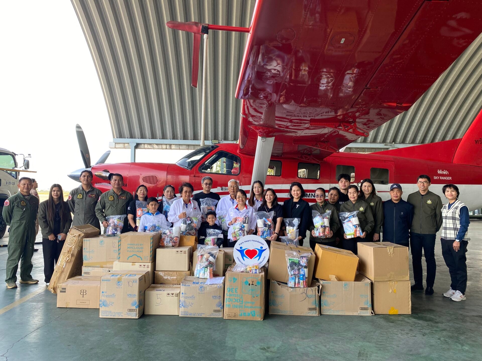 การส่งมอบถุงยังชีพในครั้งนี้ประกอบด้วย ถุงยังชีพอาหารแห้งจำนวน 200 ชุด ถุงยังชีพอาหารพร้อมทาน 300 ชุด และน้ำดื่ม 10 แพ็ก เพื่อช่วยบรรเทาความเดือดร้อนและสนับสนุนการดำรงชีวิตประจำวันของชาวบ้านที่ได้รับผลกระทบ โดยสิ่งของทั้งหมดได้ถูกลำเลียงด้วยเครื่องบินเล็ก โดยมี นางอริสรา สิทธิยศ