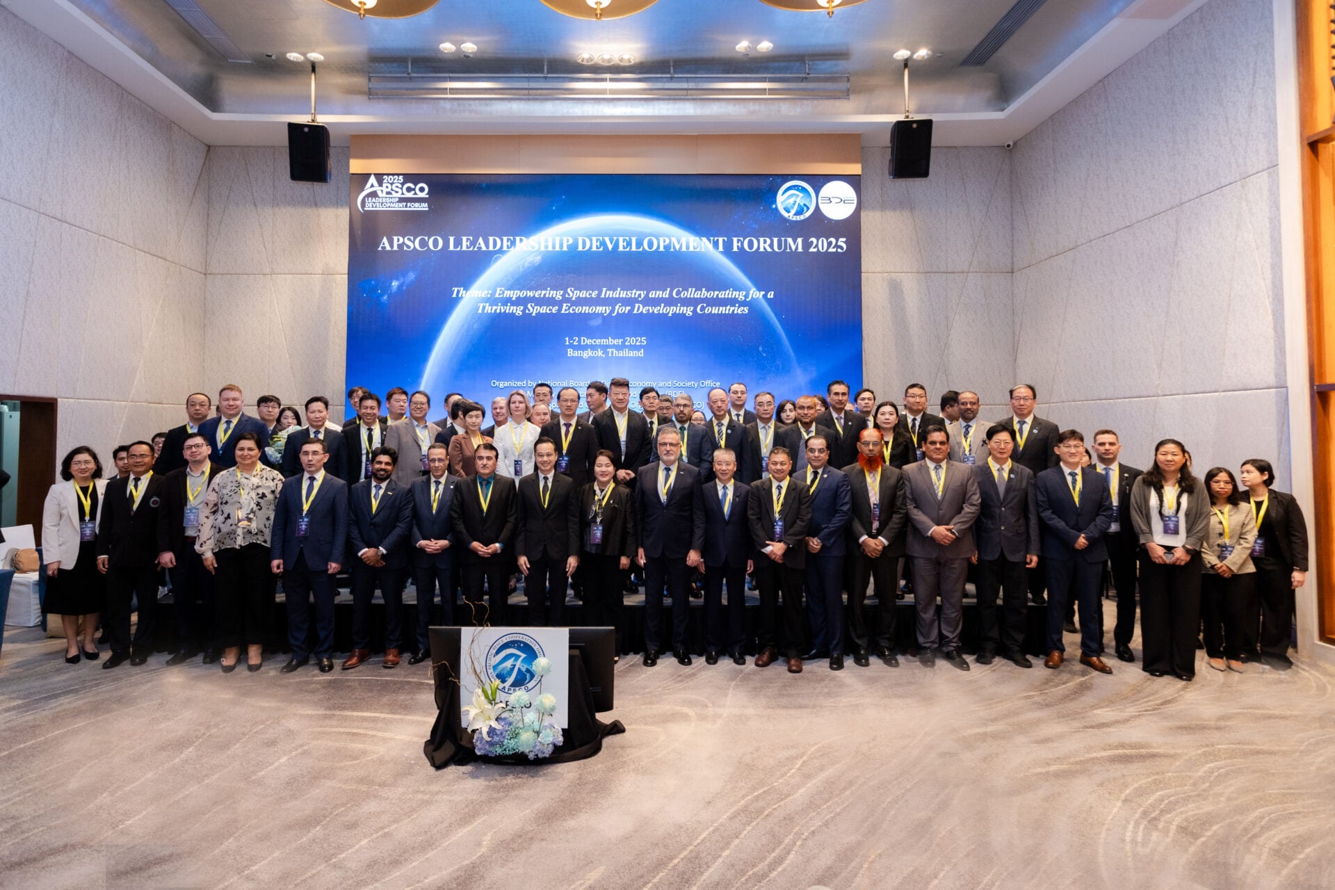 วันนี้ (1 ธันวาคม 2568) นายเวทางค์ พ่วงทรัพย์ เลขาธิการคณะกรรมการดิจิทัลเพื่อเศรษฐกิจและสังคมแห่งชาติ (BDE) เป็นประธานเปิดงานประชุมสัมมนา “APSCO Leadership Development Forum” ครั้งที่ 3 ในหัวข้อ “Empowering Space Industry and Collaborating for a Thriving Space Economy for Developing Countries” จัดขึ้นโดยองค์การความร่วมมือด้านอวกาศแห่งเอเชียแปซิฟิก (APSCO) ร่วมกับสำนักงานคณะกรรมการดิจิทัลเพื่อเศรษฐกิจและสังคมแห่งชาติ (BDE) ระหว่างวันที่ 1 – 3 ธันวาคม 2568 ณ โรงแรมมิลเลนเนียม ฮิลตัน กรุงเทพฯ ภายในงานประกอบด้วยผู้เข้าร่วม จำนวนกว่า 150 คน ซึ่งเป็นผู้แทนระดับสูงจากรัฐสมาชิกองค์การ APSCO ผู้เชี่ยวชาญด้านอวกาศ ตัวแทนภาคธุรกิจ และภาคการศึกษาที่เกี่ยวข้องกับกิจการอวกาศจากทั้งในภูมิภาคเอเชียและแปซิฟิก และจากทั่วโลก นับเป็นโอกาสในการพบปะ เพื่อแลกเปลี่ยนมุมมองใหม่ และสร้างความเข้าใจเชิงลึกในประเด็นสำคัญที่กำลังกำหนดอนาคตของกิจการอวกาศของประเทศกำลังพัฒนาในภูมิภาคเอเชียแปซิฟิกและของโลก อาทิ กฎหมายและนโยบายอวกาศ กรอบธรรมาภิบาลเพื่อการบริหารจัดการอวกาศ ตลอดจนแนวโน้ม และโอกาสความร่วมมือทางธุรกิจและอุตสาหกรรมอวกาศในระยะต่อไป