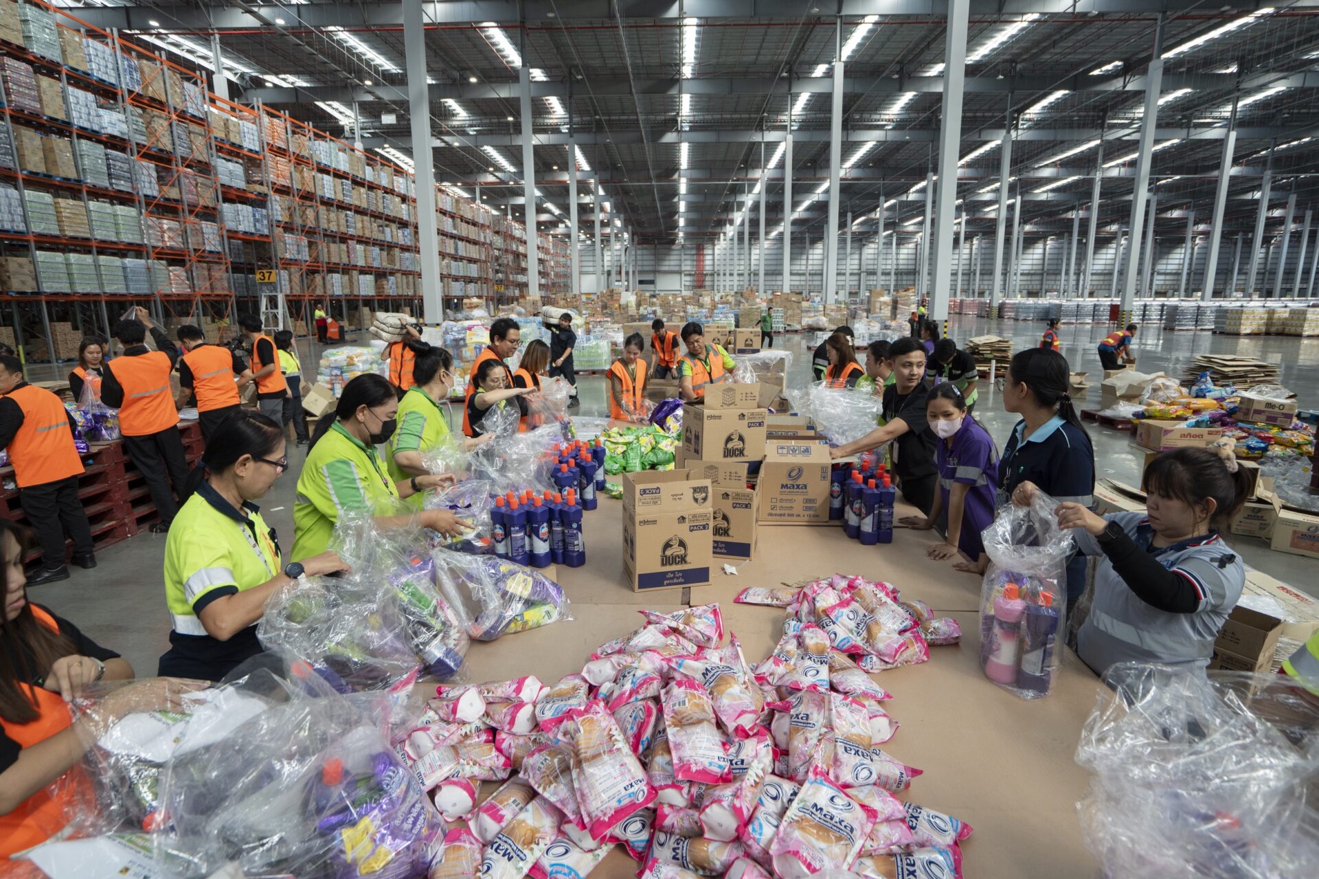 กลุ่มบีเจซี บิ๊กซี นำโดย คุณฐาปณี เตชะเจริญวิกุล กรรมการรองผู้จัดการใหญ่อาวุโส พร้อมด้วยคณะผู้บริหารและพนักงานจิตอาสา ร่วมกันบรรจุ “ถุงยังชีพ” และ “ถุงฟื้นฟู” จำนวนรวม กว่า 2,000 ชุด เพื่อจัดส่งผ่านขบวนรถกระจายสินค้าที่ร่วมกับพันธมิตรด้านการขนส่ง DHL ส่งต่อไปยังพื้นที่ประสบอุทกภัยในภาคใต้ โดยใช้ศูนย์กระจายสินค้าบางปะอิน จังหวัดพระนครศรีอยุธยา เป็นฐานปฏิบัติการหลัก เมื่อวันที่ 28 – 29 พฤศจิกายน 2568 ที่ผ่านมา