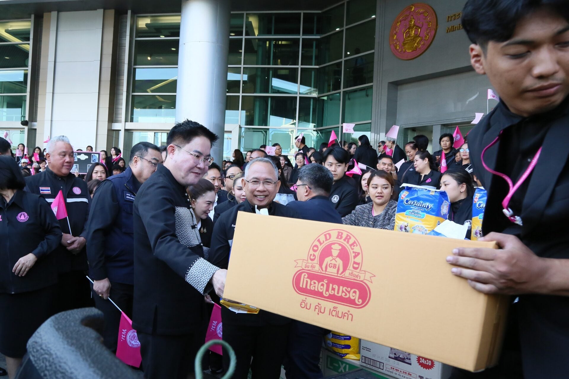 วันที่ 2 ธันวาคม 2568 นายอัครา พรหมเผ่า รัฐมนตรีว่าการกระทรวงการพัฒนาสังคมและความมั่นคงของมนุษย์ (รมว.พม.) เป็นประธานเปิดกิจกรรม “พม. ใกล้คุณ” พร้อมเคียงข้างคุณ สู้ มหาอุทกภัยภาคใต้ พร้อมปล่อยขบวนรถสิ่งของบริจาค “พม. ใกล้คุณ” พร้อมเคียงข้างคุณ สู้ มหาอุทกภัยภาคใต้ เพื่อนำไปส่งมอบความช่วยเหลือแก่กลุ่มเปราะบางและประชาชนที่ประสบอุทกภัยในพื้นที่ภาคใต้ อีกทั้ง มีการรับมอบสิ่งของบริจาค รวมมูลค่ากว่า 4.9 ล้านบาท จากภาคีเครือข่าย ได้แก่ บริษัท ซีดริ้ง จำกัด , บริษัท เค เบฟเวอเรจ จำกัด , คณะกรรมการเคหะชุมชนห้วยขวาง , บริษัท ผลิตภัณฑ์อาหารกว้างไพศาล จำกัด (มหาชน) (ปุ้มปุ้ย) , มูลนิธิเมืองไทยยิ้ม , สำนักงานสภาพัฒนาเศรษฐกิจและสังคมแห่งชาติ , บริษัท Plan B โดยมี นายกันตพงศ์ รังษีสว่าง ปลัดกระทรวงการพัฒนาสังคมและความมั่นคงของมนุษย์ พร้อมด้วยคณะผู้บริหารกระทรวง พม. , ศิลปินดารานักแสดง ได้แก่ น้ำ - จุฑามาศ หวังสวัสดิ์ , อาสาสมัครพัฒนาสังคมและความมั่นคงของมนุษย์ (อพม.) กรุงเทพมหานคร และทีม “พม.ใกล้คุณ” เข้าร่วม ณ บริเวณหน้าอาคารกรมพัฒนาสังคมและสวัสดิการ กระทรวงการพัฒนาสังคมและความมั่นคงของมนุษย์ สะพานขาว กรุงเทพฯ
