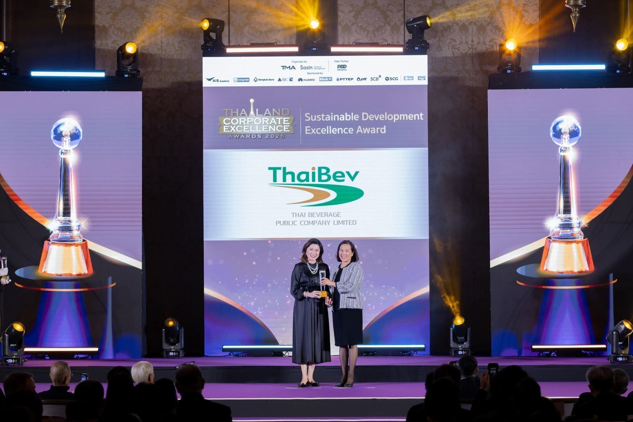 บริษัท ไทยเบฟเวอเรจ จำกัด (มหาชน) ได้รับรางวัลระดับ Distinguished สาขาความเป็นเลิศด้านผู้นำ (Leadership Excellence Award) และ สาขาความเป็นเลิศด้านการพัฒนาที่ยั่งยืน (Sustainable Development Excellence Award) จากงาน TMA Excellence Awards 2025 จัดโดยสมาคมการจัดการธุรกิจแห่งประเทศไทย (TMA) เพื่อเชิดชูองค์กรที่มีความเป็นเลิศในการบริหารองค์กรในด้านต่าง ๆ โดยมีคุณต้องใจ ธนะชานันท์ รองกรรมการผู้อำนวยการใหญ่ ผู้บริหารสูงสุด กลุ่มงานความยั่งยืนและกลยุทธ์ บริษัท ไทยเบฟเวอเรจ จำกัด (มหาชน) เป็นผู้แทนรับมอบรางวัลดังกล่าว จาก ดร.กิริฎา เภาพิจิตร ผู้ช่วยรัฐมนตรีประจำกระทรวงพาณิชย์ ประธานในพิธีมอบรางวัล ณ โรงแรมวอลดอร์ฟ แอสโทเรีย กรุงเทพ ในวันพุธที่ 26 พฤศจิกายน 2568