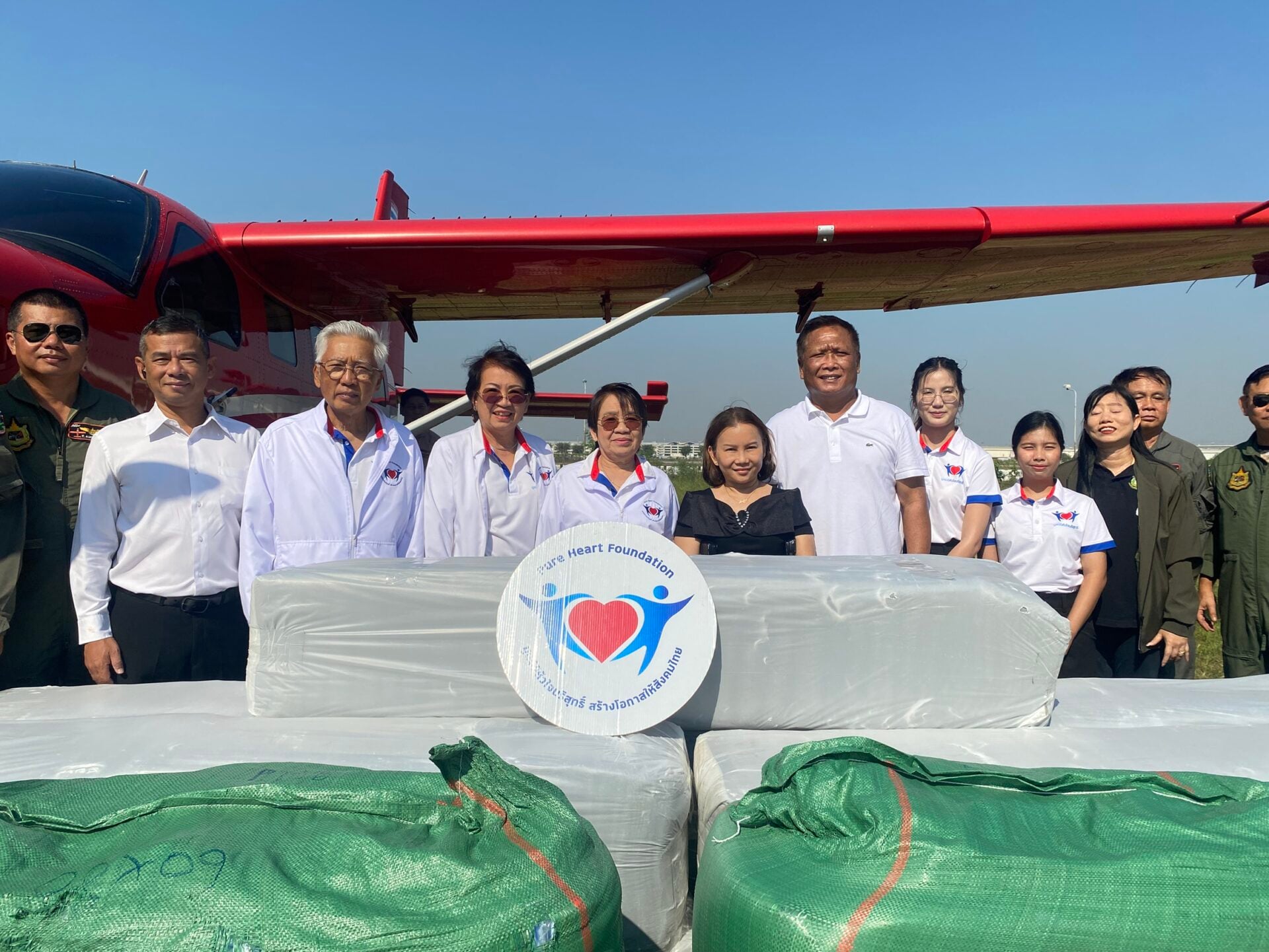 นางเธียรรัตน์ นะวะมะวัฒน์ ประธานมูลนิธิหัวใจบริสุทธิ์ พร้อมด้วยนายวีระ-นางสมานจิตต์ ขำสุวรรณ และกัลยาณมิตร ร่วมส่งมอบผ้าห่มกันหนาว จำนวน 500 ผืน เพื่อบรรเทาความเดือดร้อนของประชาชนในพื้นที่ประสบภัย โดยมีนายศราวุธ ชาติโยธิน ผู้อำนวยการส่วนปฏิบัติการบิน ศูนย์เทคโนโลยีดิจิทัลและอากาศยาน เป็นผู้แทนรับมอบ ณ ฝูงเครื่องบิน กองการบิน ศูนย์การเคลื่อนย้ายกองทัพบก (ขส.ทบ.) ก่อนนำไปกระจายช่วยเหลือชาวบ้านในพื้นที่ต่อไป