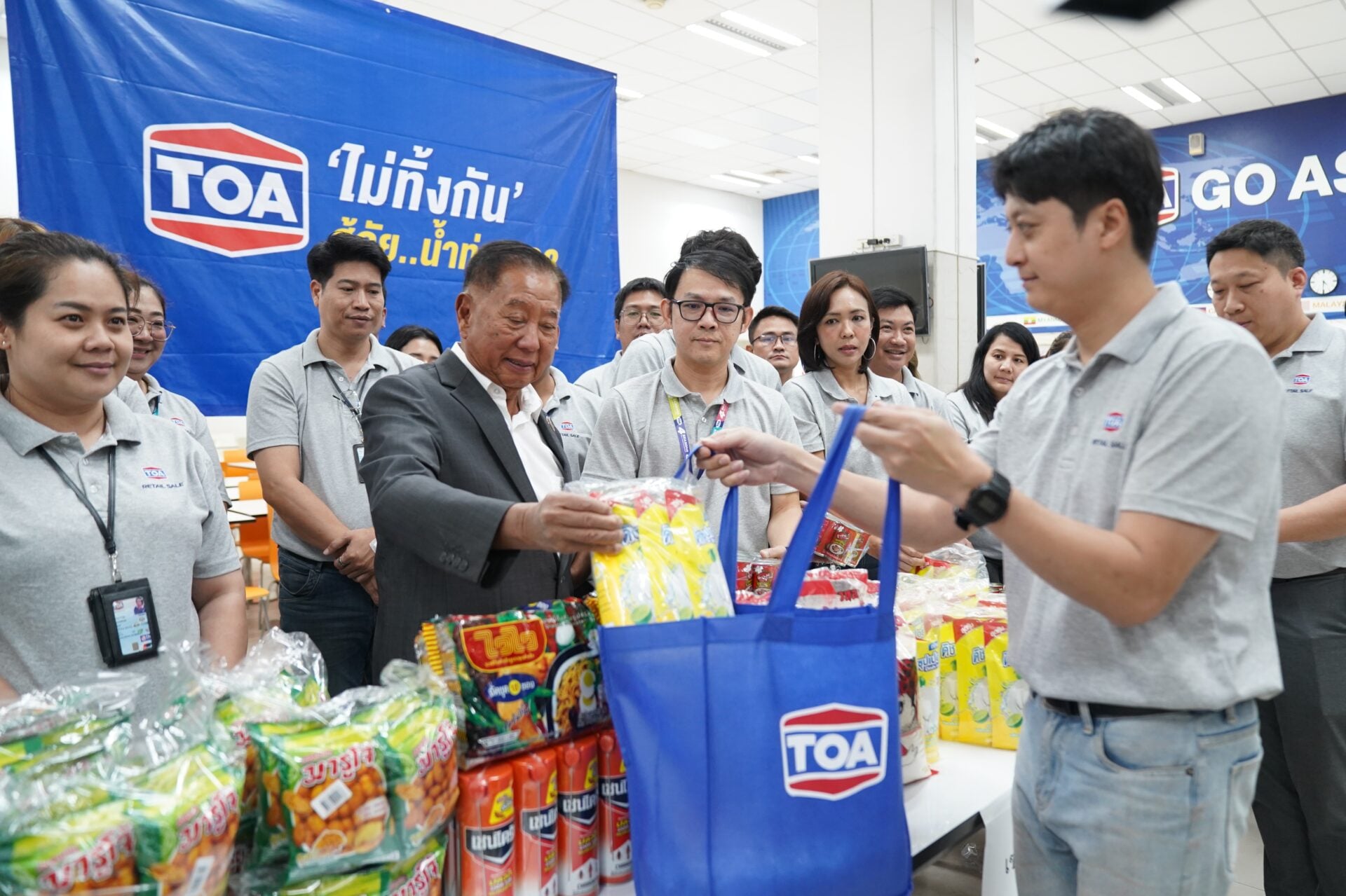 คุณประจักษ์ ตั้งคารวคุณ ประธานผู้ก่อตั้ง TOA และ ประธานมูลนิธิคุณแม่ลี้กิมเกียว ตั้งคารวคุณ เดินหน้าโครงการ TOA ไม่ทิ้งกัน ‘รวมพลังไทย ฟื้นฟูน้ำท่วมภาคใต้’ จัดเตรียมสิ่งของบรรเทาทุกข์ ถุงยังชีพ โดยได้รับความร่วมแรงร่วมใจจากผู้บริหาร และเพื่อนพนักงานทีโอเอจิตอาสากว่า 100 คน ร่วมกันบรรจุถุงยังชีพกว่า 2,000 ชุด ประกอบด้วย ข้าวสาร บะหมี่กึ่งสำเร็จรูป ปลากระป๋อง ถั่วมารูโจ้ น้ำยาทำความสะอาดทีโพล์ สเปรย์กำจัดแมลง เชนไดร้ท์ และสิ่งของจำเป็นอื่นๆ พร้อมทั้งจัดเตรียมผ้าห่มกันหนาว จำนวน 1,000 ผืน เพื่อช่วยเหลือผู้ประสบอุทกภัยจากความเสียหายหลังน้ำท่วม และบรรเทาความหนาวเย็นในช่วงฤดูหนาว