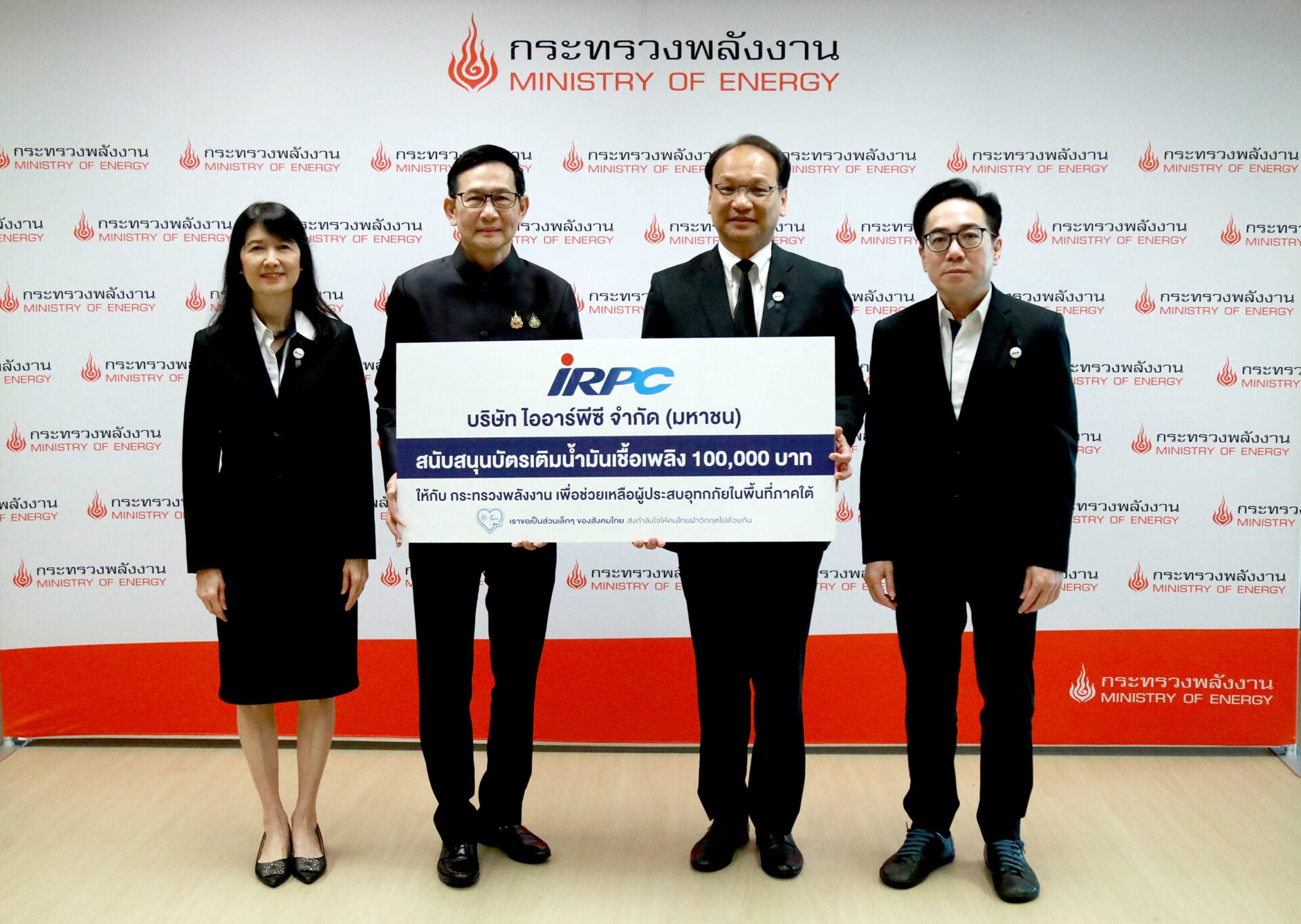 นายอรรถพล ฤกษ์พิบูลย์ รัฐมนตรีว่าการกระทรวงพลังงาน รับมอบบัตรเติมน้ำมัน มูลค่า 100,000 บาท จาก นายเทอดเกียรติ พร้อมมูล ประธานเจ้าหน้าที่บริหารและกรรมการผู้จัดการใหญ่ และ นางสาววนิดา อุทัยสมนภา รองกรรมการผู้จัดการใหญ่ พาณิชยกิจและการตลาด บริษัท ไออาร์พีซี จำกัด (มหาชน) (IRPC) เพื่อสนับสนุนกิจกรรม “พลังงานช่วยเหลือประชาชนผู้ประสบอุทกภัยในภาคใต้” ของกระทรวงพลังงาน โดยการร่วมสนับสนุนน้ำมันเชื้อเพลิงเพื่อใช้กับยานพาหนะต่างๆ ที่ใช้ในการกู้ภัย ซ่อมแซมและฟื้นฟูความเสียหายต่าง ๆ ภายหลังสถานการณ์อุทกภัยในพื้นที่จังหวัดภาคใต้เริ่มคลี่คลาย โดยมีหน่วยงานที่ร่วมให้การสนับสนุน ได้แก่ การไฟฟ้าฝ่ายผลิตแห่งประเทศไทย บริษัท ปตท. จำกัด (มหาชน) และ กลุ่มผู้ค้าน้ำมันมาตรา 7 ณ กระทรวงพลังงาน อาคารบี ศูนย์เอนเนอร์ยี่คอมเพล็กซ์