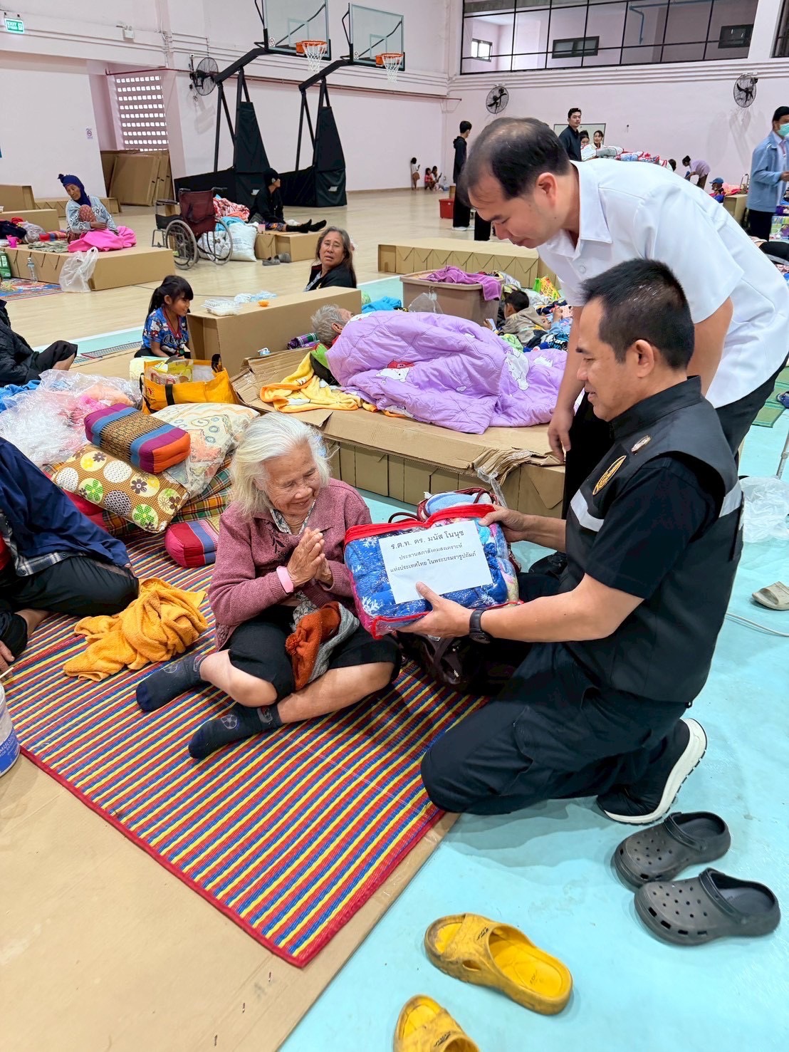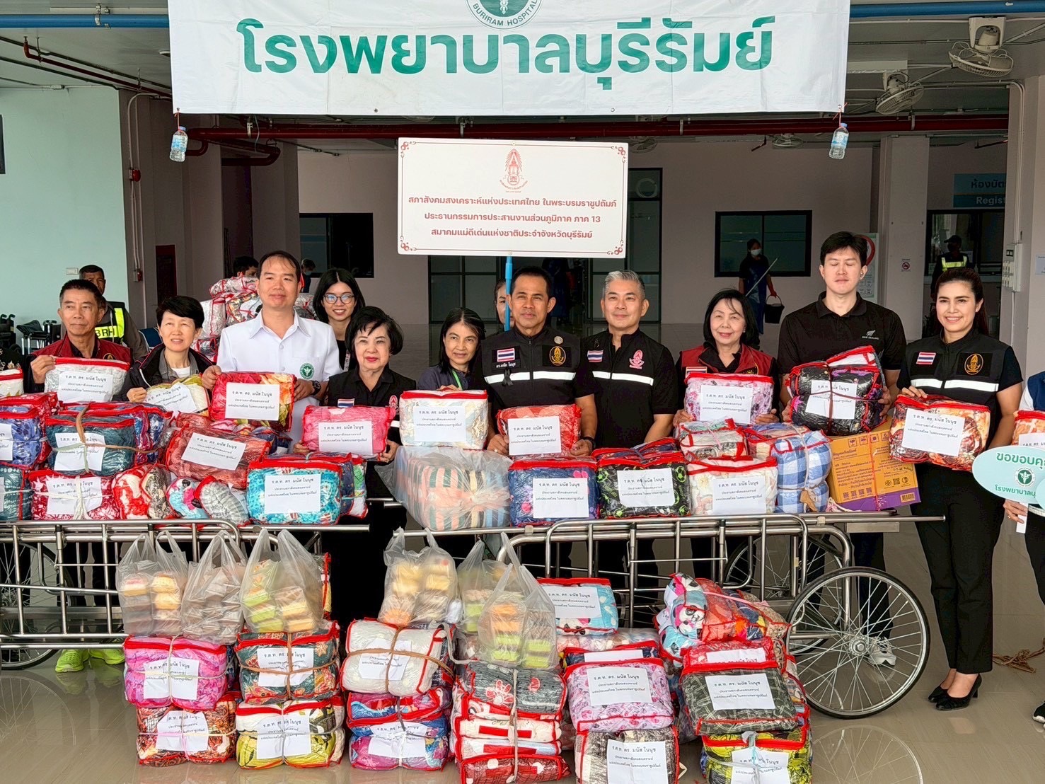 คณะฯ ได้ลงพื้นที่มอบสิ่งของและกำลังใจ ณ องค์การบริหารส่วนตำบลบ้านยาง และโรงพยาบาลบุรีรัมย์ โดยได้ส่งมอบสิ่งของจำเป็นและเงินช่วยเหลือหลายด้าน ได้แก่ ถุงยังชีพสำหรับเป็นกำลังใจและช่วยเหลือการดำรงชีวิตประจำวัน ผ้าห่มและผ้าเช็ดตัวเพื่อให้การดูแลผู้ประสบภัยหรือผู้ที่ต้องการความช่วยเหลือ ตลอดจนเงินช่วยเหลือสำหรับประชาชนที่พักอาศัยอยู่ในศูนย์พักพิงของ อบต.บ้านยาง รวมถึงเงินสนับสนุนการดำเนินงานของโรงพยาบาลบุรีรัมย์ เพื่อเสริมประสิทธิภาพในการดูแลประชาชนในพื้นที่อย่างทั่วถึงและต่อเนื่อง