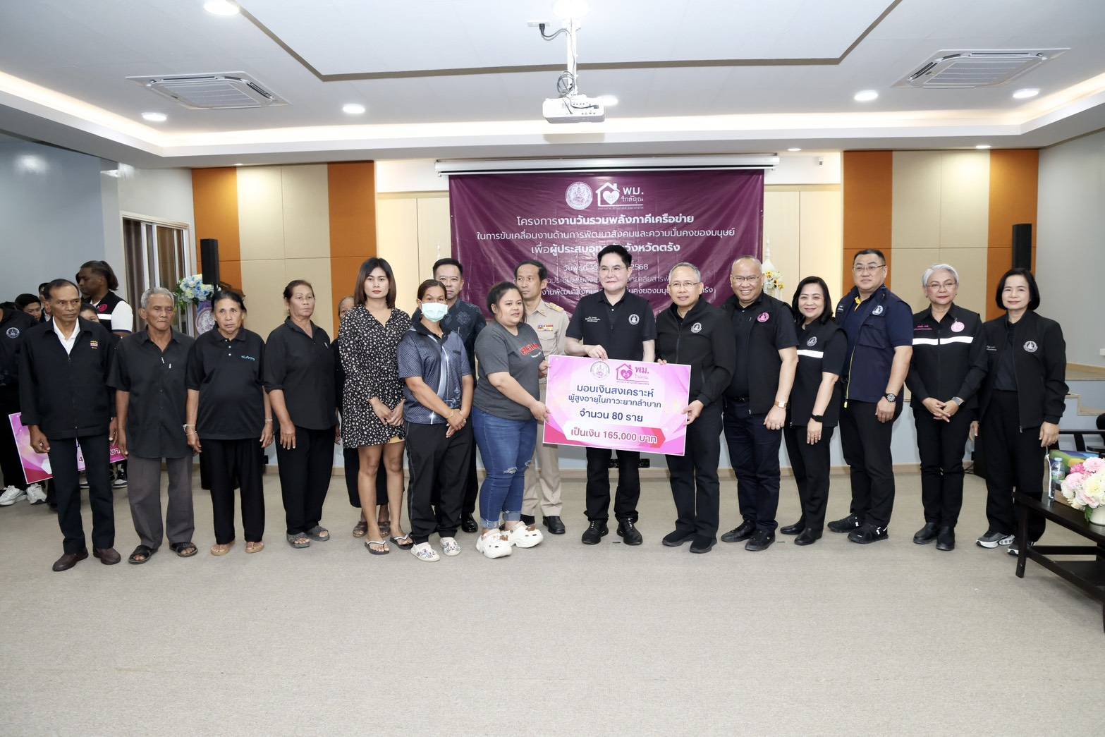 ในโอกาสนี้ มีการรับมอบถุงยังชีพ เครื่องอุปโภค บริโภคที่จำเป็นสำหรับกลุ่มเปราะบาง จากภาคธุรกิจเอกชน CSR TRANG โดยบริษัท ผลิตภัณฑ์อาหารกว้างไพศาล จำกัด (มหาชน) ผู้ผลิตและจำหน่ายอาหารกระป๋อง “ปุ้มปุ้ย” และจาก การเคหะแห่งชาติ