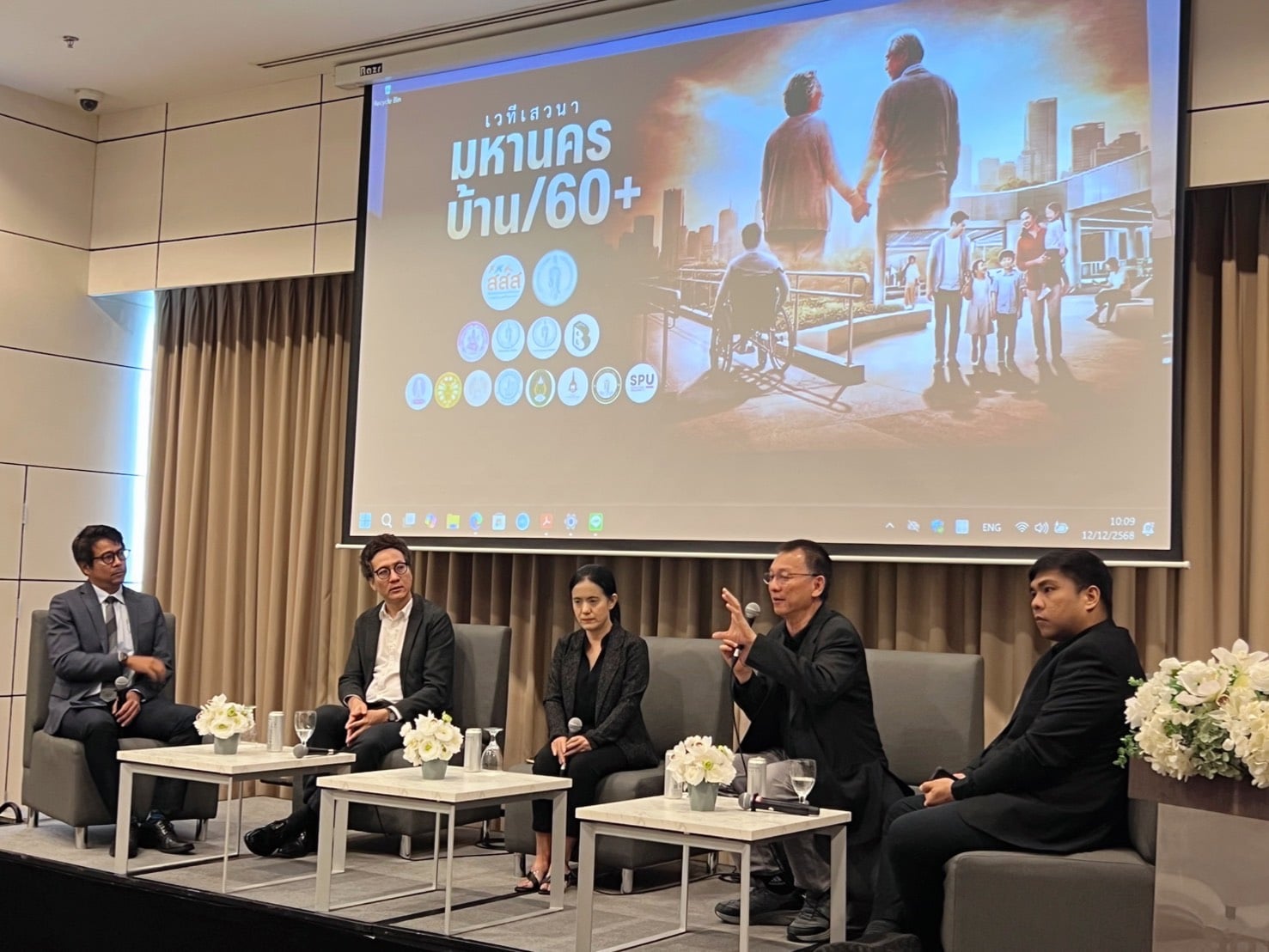 รศ.ดร.มณฑล จันทร์แจ่มใส ประธานกรรมการบริหารสำนักงานพัฒนาที่อยู่อาศัย พร้อมด้วย นายจิตรกร พยัฆโส รองผู้อำนวยการสำนักงานพัฒนาที่อยู่อาศัย รักษาการผู้อำนวยการสำนักงานพัฒนาที่อยู่อาศัย ร่วมเสวนา มหานคร / บ้าน / 60+ แนวทางการขับเคลื่อนการจัดการที่อยู่อาศัยในเมืองมหานคร บทบาทขององค์กรปกครองส่วนท้องถิ่น(กทม.) ในการพัฒนาคุณภาพชีวิตที่อยู่อาศัยของกลุ่มเปราะบาง ได้แก่ ผู้พิการ ผู้สูงอายุ ผู้มีรายได้น้อย และคนไร้บ้าน
