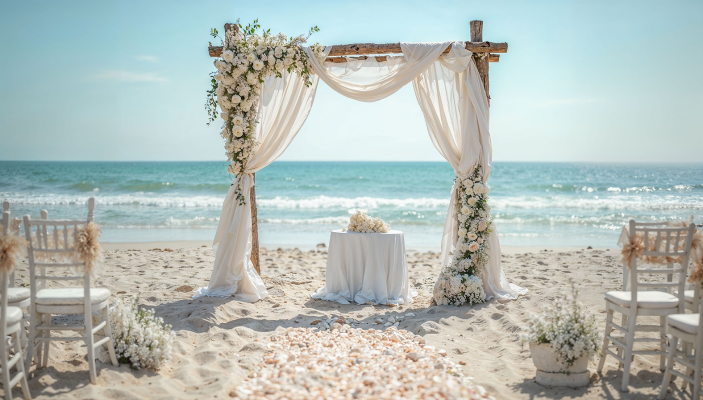 ลองนึกภาพตามดูสิ งานแต่งริมทะเลที่มีฉากหลังเป็นท้องฟ้าสีครามกับผืนทรายนุ่ม ๆ องค์ประกอบทุกอย่างไม่ว่าจะเป็นซุ้มดอกไม้ ผ้าผูกเก้าอี้ หรือแม้แต่แก้วไวน์ ก็ควรจะส่งเสริมให้งานดูสบายตา อบอุ่น และเป็นกันเองที่สุด