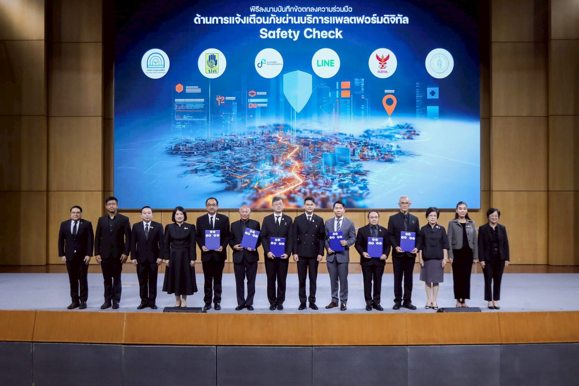 15 ธันวาคม 2568 นายไชยชนก ชิดชอบ รัฐมนตรีว่าการกระทรวงดิจิทัลเพื่อเศรษฐกิจและสังคม กล่าวว่า ในสถานการณ์ภัยพิบัติ "เวลา" คือ ปัจจัยชี้ขาด แต่ความเร็วเพียงอย่างเดียวอาจไม่เพียงพอ การสื่อสารและการแจ้งเตือนภัยจากภาครัฐต้องมาพร้อมความถูกต้องและความน่าเชื่อถือ เพื่อให้ประชาชนสามารถรับรู้สถานการณ์ เตรียมพร้อม และป้องกันตนเองได้อย่างทันท่วงที ลดความเสี่ยงและบรรเทาผลกระทบที่อาจจะเกิดขึ้น ประเด็นนี้ถือเป็นหนึ่งในนโยบาย Quick Win ของกระทรวงดิจิทัลเพื่อเศรษฐกิจและสังคม เพื่อบูรณาการความร่วมมือกับหน่วยงานภาครัฐและผู้ให้บริการแพลตฟอร์มดิจิทัล เชื่อมโยงข้อมูลเตือนภัยฉุกเฉินด้วยกลไกที่ตรวจสอบความถูกต้องได้ พร้อมส่งต่อข้อมูลผ่านช่องทางที่ประชาชนเข้าถึงง่าย รองรับการสื่อสารจากภาครัฐได้อย่างมีประสิทธิภาพ เพื่อให้ระบบเตือนภัยมีความครอบคลุมและพร้อมใช้งานทั่วประเทศ โดยการลงนามบันทึกข้อตกลงความร่วมมือ (MOU) ในครั้งนี้ ถือเป็นอีกหนึ่งก้าวสำคัญของการต่อยอดที่มุ่งสร้าง “กลไกการทำงานร่วมกัน” ระหว่างหน่วยงานรัฐและแพลตฟอร์มดิจิทัล เพื่อให้ประชาชนได้รับข้อมูลที่จำเป็นจากภาครัฐอย่างทันท่วงที และสามารถยืนยันความปลอดภัยของตนเอง เมื่อเผชิญเหตุภัยพิบัติ ผ่านฟีเจอร์ “Safety Check” ทำให้ประชาชนสามารถใช้งานได้ผ่านแอปพลิเคชัน LINE ที่ยกระดับระบบสื่อสารสาธารณภัยของประเทศทำให้ประชาชนรับรู้สถานการณ์ เข้าถึงการดูแลความปลอดภัยในยามฉุกเฉินได้อย่างมีประสิทธิภาพยิ่งขึ้น