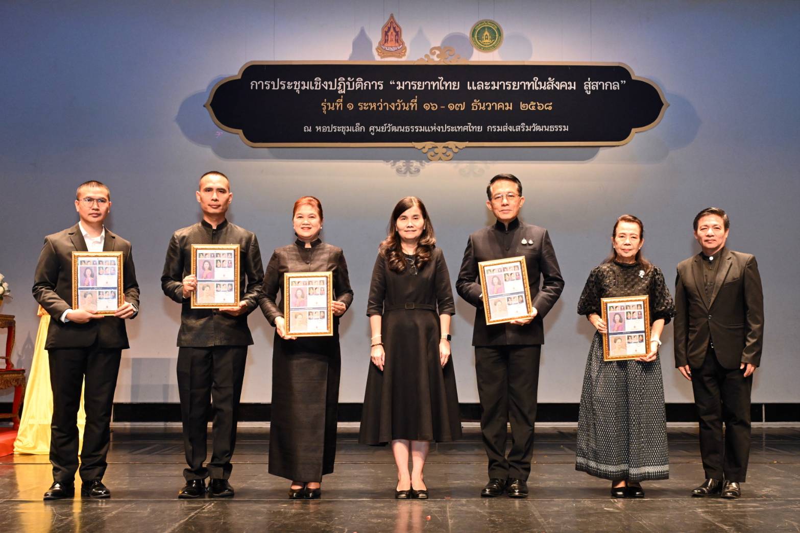 อธิบดี สวธ. กล่าวต่อว่า กรมส่งเสริมวัฒนธรรมขอขอบคุณวิทยากร ผู้มีความรู้ ความสามารถ และผู้เกี่ยวข้องที่เป็นพลังสำคัญในการร่วมกันถ่ายทอดความรู้ และขอให้ทุกท่านที่เข้าร่วมการประชุมเชิงปฏิบัติการในวันนี้ ประสบผลสำเร็จในการนำความรู้ความเข้าใจในครั้งนี้ ไปใช้ในการพัฒนาสังคมควบคู่กับการธำรงอัตลักษณ์ความเป็นไทย อย่างสร้างสรรค์ เพื่อสร้างการรับรู้วัฒนธรรมและอัตลักษณ์ความเป็นไทยในสังคมสู่สากล สร้างเสน่ห์ความเป็นไทย สร้างความประทับใจทั่วโลก