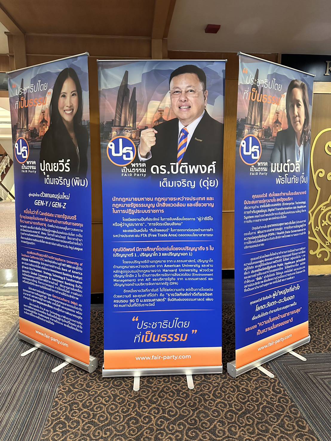 ไฮไลต์สำคัญ พรรคเป็นธรรมประกาศเปิดตัว 3 แคนดิเดตนายกรัฐมนตรี ได้แก่ นายปิติพงศ์ เต็มเจริญ น.ส.ปุณยวีร์ เต็มเจริญ น.ส.มนต์วลี พันธโนทัย พร้อมชูสโลแกนพรรค “ประชาธิปไตยที่เป็นธรรม”