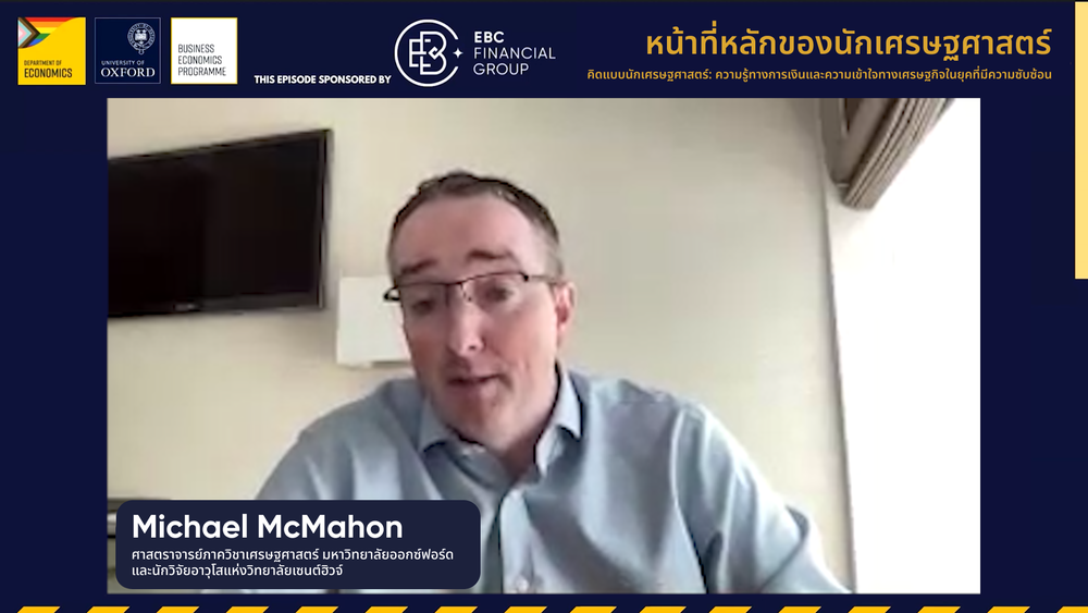 นอกจากนี้ EBC ยังร่วมมือกับภาควิชาเศรษฐศาสตร์ มหาวิทยาลัยออกซ์ฟอร์ดจัดเวทีเสวนาเชิงลึกอย่างต่อเนื่อง ครอบคลุมประเด็นสำคัญตั้งแต่นโยบายเศรษฐกิจมหภาคไปจนถึงกลไกตลาด ขณะเดียวกันยังขยายการเข้าถึงองค์ความรู้ผ่านรายการพอดแคสต์ Pulse 360° บน Spotify ถ่ายทอดมุมมองตลาด ภาวะผู้นำ และความเชี่ยวชาญด้านการเงินสู่ผู้ฟังทั่วโลก โดย Michael McMahon ได้เข้าร่วมรายการหลายครั้งเพื่อนำเสนอแนวคิดเศรษฐศาสตร์ประยุกต์