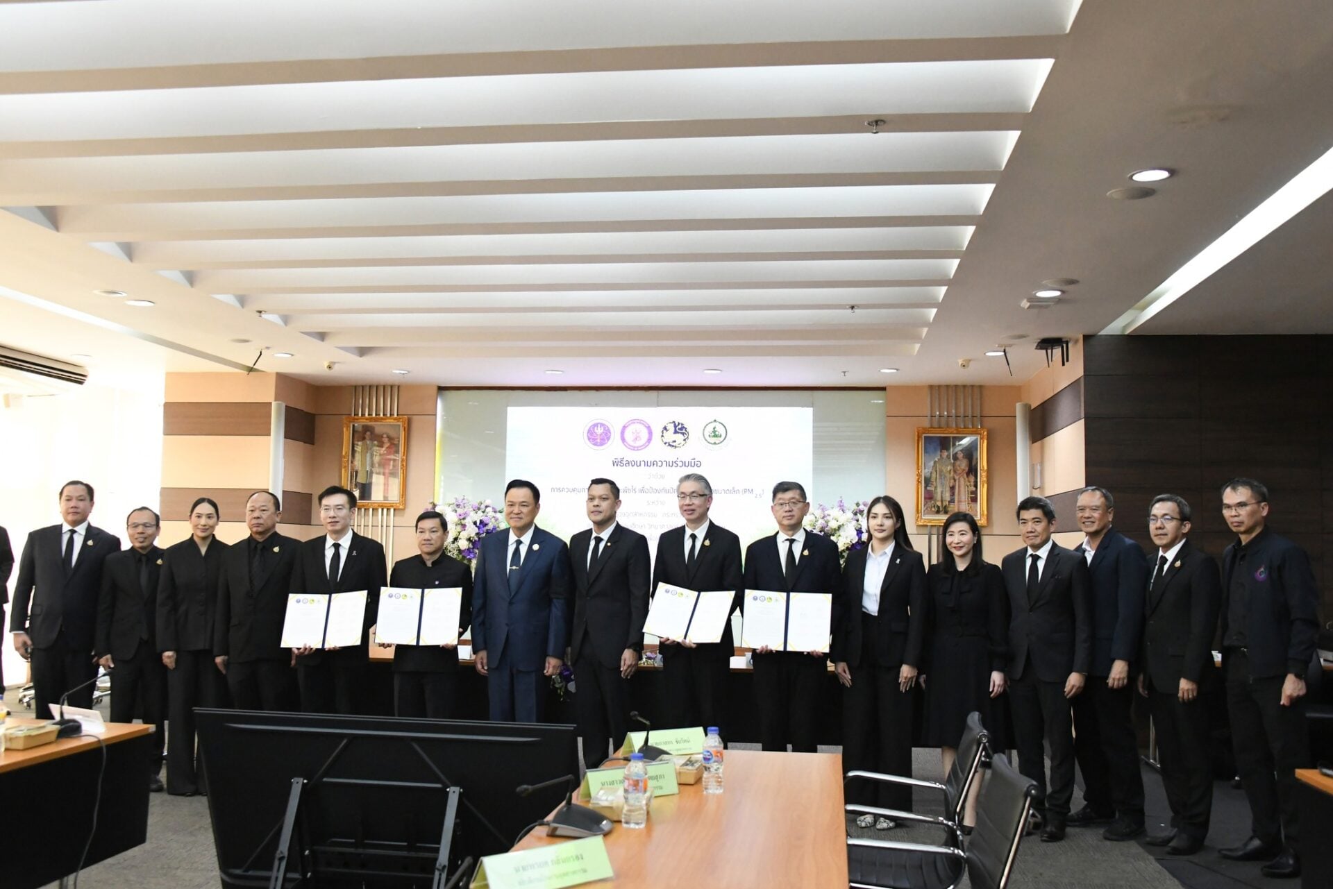 นายกรัฐมนตรี และรัฐมนตรีว่าการกระทรวงมหาดไทย เป็นสักขีพยาน กระทรวงอุตสาหกรรม ร่วมกับกระทรวงมหาดไทย กระทรวงการอุดมศึกษาวิทยาศาสตร์ วิจัยและนวัตกรรม และกระทรวงดิจิทัลเพื่อเศรษฐกิจและสังคม ลงนามความร่วมมือว่าด้วยการควบคุมการเผาอ้อยและพืชไร่ เพื่อป้องกันปัญหาฝุ่นละอองขนาดเล็ก (PM 2.5)