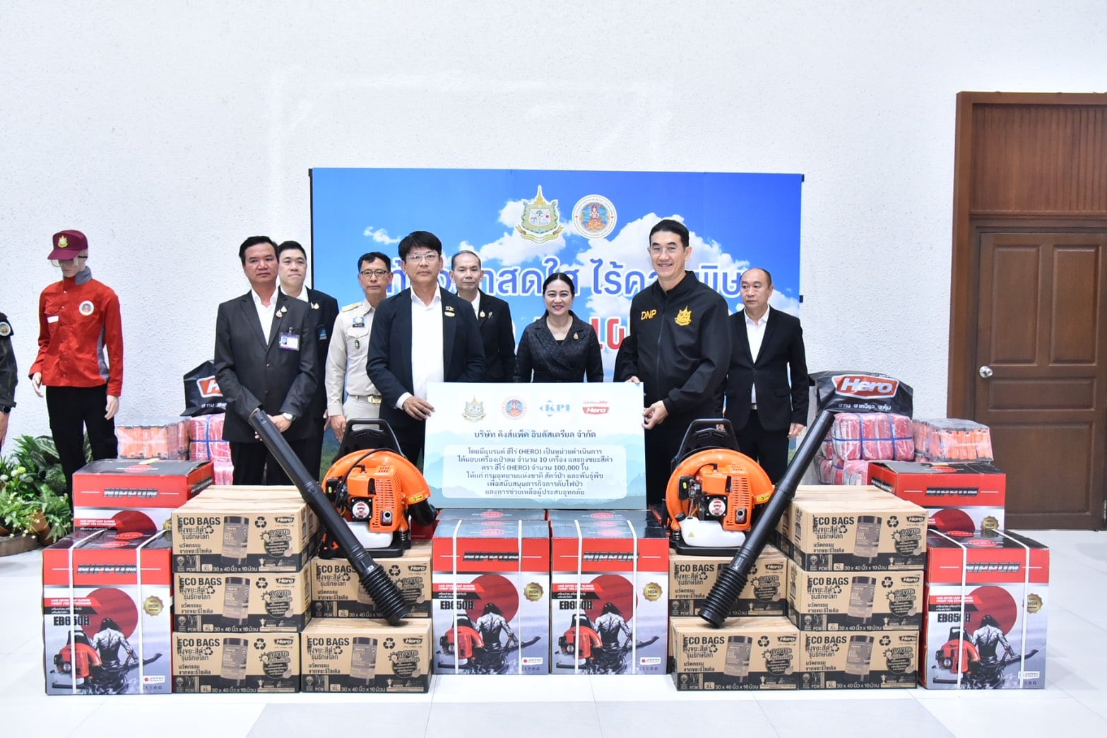 เมื่อวันที่ 6 มกราคม 2569 เวลา 14.00 น. ดร.รวีวรรณ ภูริเดช ปลัดกระทรวงทรัพยากรธรรมชาติและสิ่งแวดล้อม ให้เกียรติเป็นสักขีพยานในพิธีมอบสิ่งของเพื่อสนับสนุนภารกิจของหน่วยงานภาครัฐในการป้องกันและแก้ไขปัญหาไฟป่า การจัดการสิ่งแวดล้อม และการช่วยเหลือผู้ประสบอุทกภัย โดยได้รับการสนับสนุนจากภาคเอกชน ได้แก่ บริษัท คิงส์แพ็ค อินดัสเตรียล จำกัด ภายใต้แบรนด์ ฮีโร่ (HERO) โดยมี ดร.ทวี จุลศักดิ์ศรีสกุล ประธานกรรมการบริหารและกรรมการผู้จัดการใหญ่ บริษัท คิงส์แพ็ค อินดัสเตรียล จำกัด ได้มอบเครื่องเป่าลม จำนวน 10 เครื่อง และถุงขยะสำหรับการใช้งานด้านสาธารณประโยชน์หลายประเภท รวมจำนวนทั้งสิ้น 100,000 ใบ คิดเป็นมูลค่าการสนับสนุนรวม 524,020 บาท โดยมีนายอรรถพล เจริญชันษา อธิบดีกรมอุทยานแห่งชาติ สัตว์ป่า และพันธุ์พืช เป็นผู้แทนรับมอบ พร้อมด้วยคณะผู้บริหารและเจ้าหน้าที่ที่เกี่ยวข้องร่วมเป็นสักขีพยาน ณ ห้องแถลงข่าว ชั้น 1 กระทรวงทรัพยากรธรรมชาติและสิ่งแวดล้อม