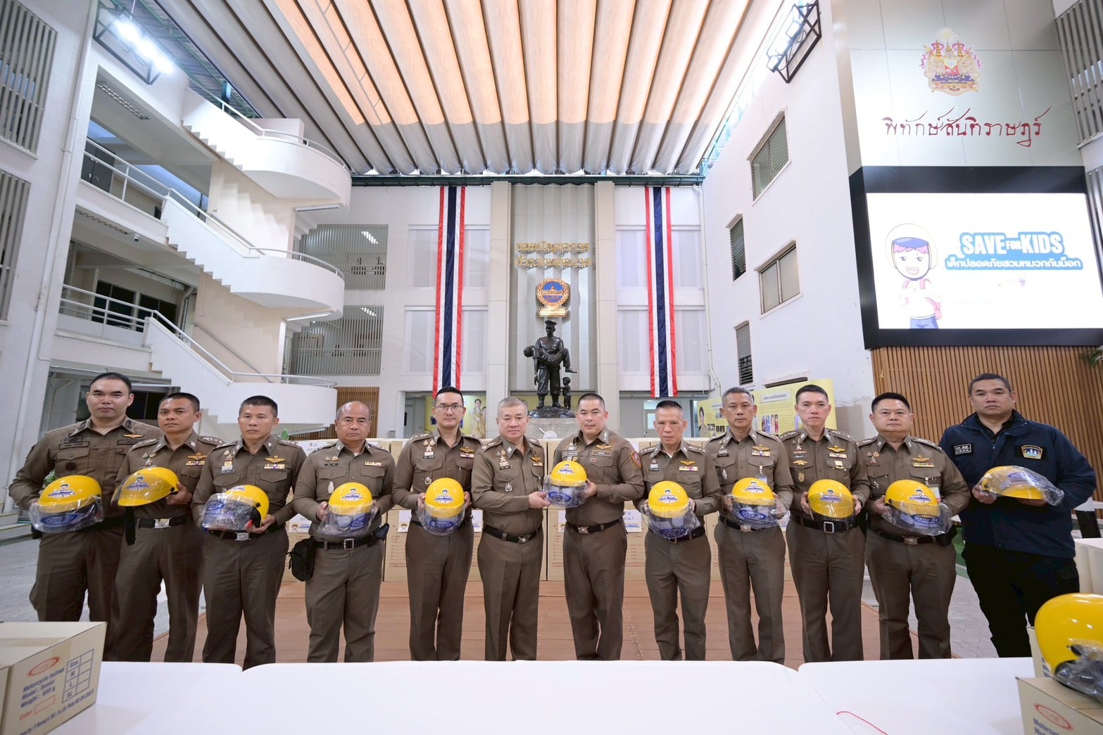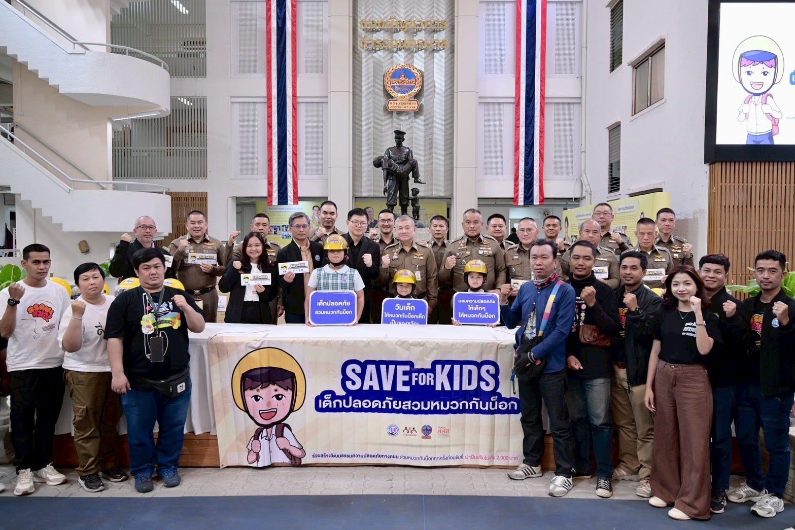 เมื่อเวลา 10.00 น. วันที่ 9 ม.ค. 2569 ที่ ลานอเนกประสงค์ กองบัญชาการตำรวจนครบาล สำนักงานกองทุนสนับสนุนการสร้างเสริมสุขภาพ (สสส.) มูลนิธิเด็ก เยาวชนและครอบครัว เครือข่ายพัฒนาคุณภาพชีวิต ร่วมกับกองบัญชาการตำรวจนครบาล จัดพิธีรับมอบหมวกกันน็อกและสื่อรณรงค์ ภายใต้โครงการ “SAVE FOR KIDS เด็กปลอดภัยสวมหมวกกันน็อก” เนื่องในวันเด็กแห่งชาติ ประจำปี 2569 เพื่อส่งเสริมความปลอดภัยทางถนนในกลุ่มเด็กและเยาวชน