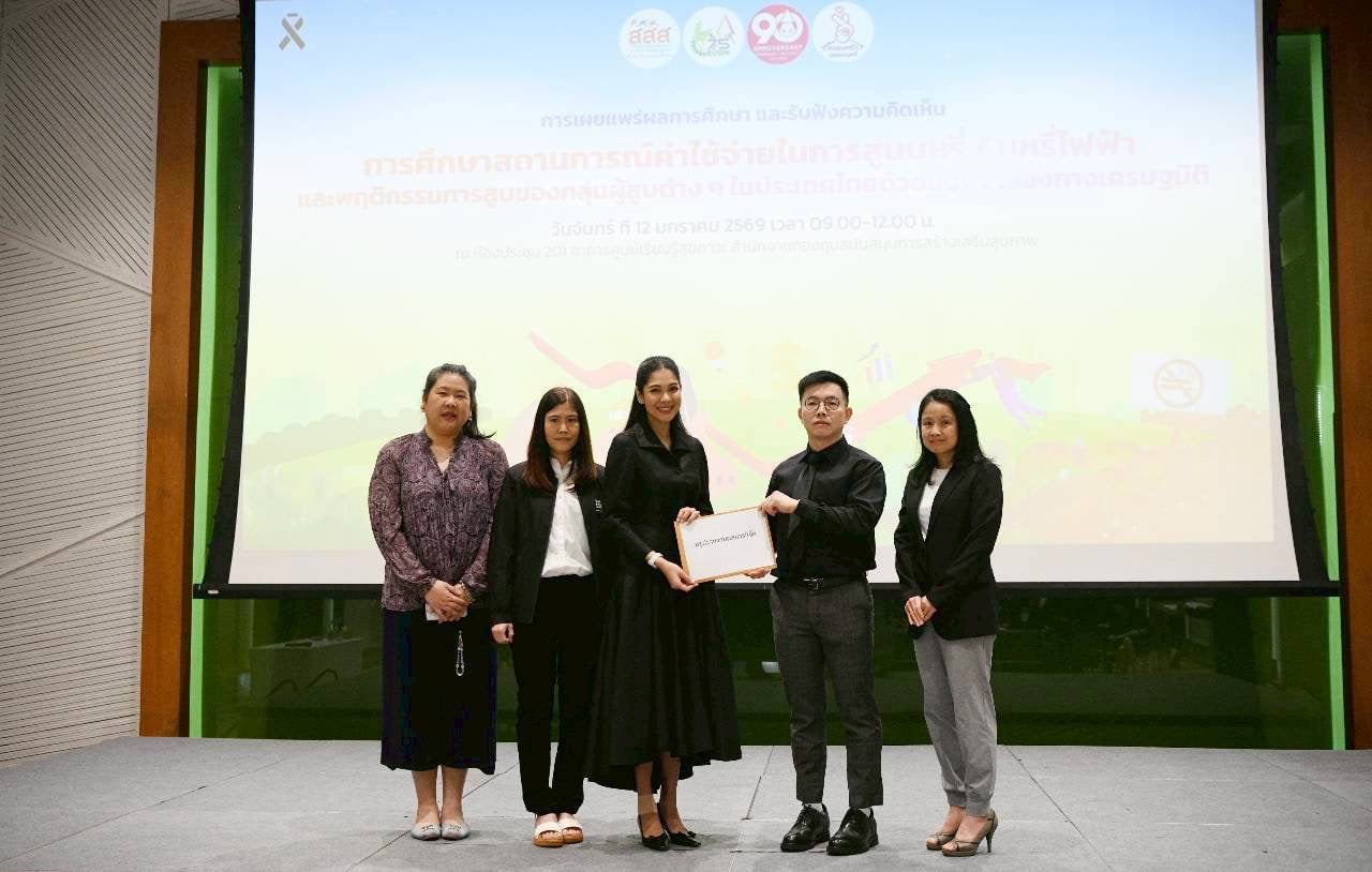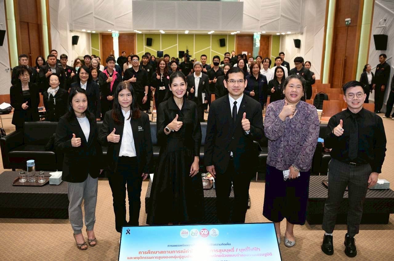 ดร.นพ.ไพโรจน์ เสาน่วม รองผู้จัดการกองทุน สสส. กล่าวว่า ปัจจุบันโครงสร้างตลาดยาสูบเปลี่ยนแปลงไปอย่างรวดเร็วจากการเข้ามาของบุหรี่ไฟฟ้า สสส. ได้สนับสนุนทีมวิจัยคณะเศรษฐศาสตร์ มหาวิทยาลัยธรรมศาสตร์ ศึกษาวิจัยสถานการณ์ค่าใช้จ่ายในการสูบบุหรี่/บุหรี่ไฟฟ้า และพฤติกรรมการสูบ ในพื้นที่ 19 จังหวัด ผลการศึกษาแสดงให้เห็นถึงความท้าทายใหม่ๆ ที่พบว่า บุหรี่ไฟฟ้าเจาะกลุ่มเป้าหมายใหม่ คือกลุ่มเยาวชน 15-20 ปี เป็นผู้สูบถึง 48.95% และผู้หญิง 52.9% สาเหตุหลักที่ทำให้เข้าสู่วงจรการสูบไม่ใช่การติดนิโคติน แต่เป็น "รสชาติและกลิ่น" รวมถึงการมีภาพลักษณ์อุปกรณ์ที่ทันสมัย ขณะที่การซื้อผ่านช่องทางออนไลน์ โดยเฉพาะ LINE และ Facebook เป็นช่องทางหลักที่เยาวชนเข้าถึงบุหรี่ไฟฟ้าได้ง่ายที่สุด นอกจากนี้ ยังมีเรื่องอคติทางพฤติกรรม (Behavioral Bias) ที่ทำให้ผู้สูบไม่ตระหนักถึงภาระทางการเงินและสุขภาพในระยะยาว โดยผู้สูบบุหรี่ไฟฟ้าประเมินอันตรายต่อตนเองต่ำที่สุด ส่วนการสูบบุหรี่มวนยังคงเป็นการสูบที่พบมากที่สุดถึง 66.8% ในจำนวนนี้ สูบเป็นประจำทุกวัน 73% ส่วนใหญ่ซื้อจากร้านขายของชำและร้านสะดวกซื้อ อย่างไรก็ตาม ผู้สูบตระหนักว่าการเลิกสูบจะช่วยประหยัดเงินได้ รวมถึงมองว่าอันตรายจากบุหรี่มวนทั้งต่อตนเองและผู้อื่นสูงกว่าบุหรี่ไฟฟ้า