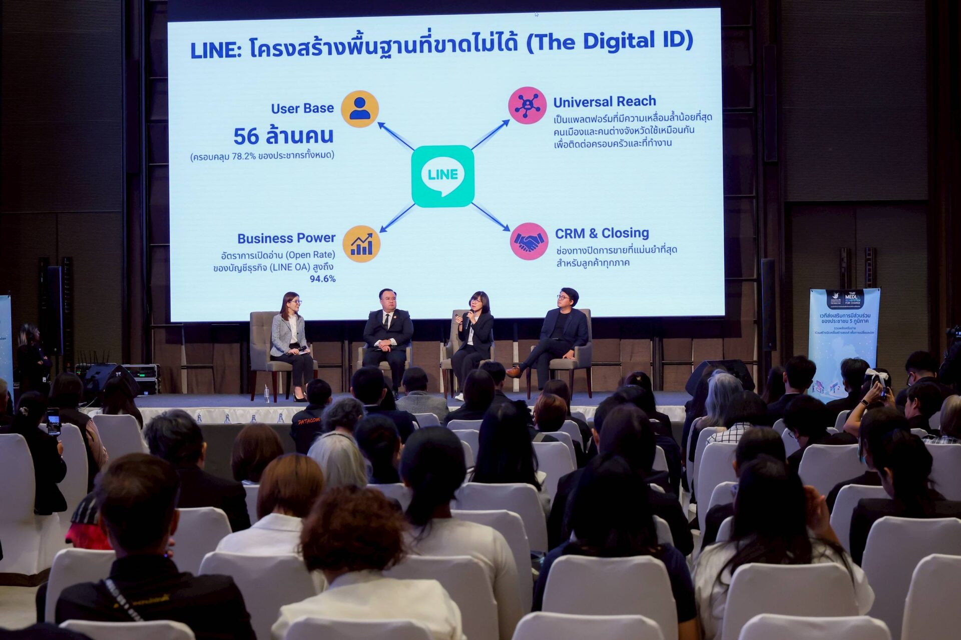 ไฮไลต์สำคัญของงาน คือเวทีเสวนาหัวข้อ “Media Ecosystem for Change: รวมพลังเครือข่าย ร่วมสร้างนิเวศสื่อสร้างสรรค์ เพื่อการเปลี่ยนแปลง” ซึ่งเป็นการระดมสมองเพื่อหาทางออกให้สื่อไทยรอดพ้นวิกฤต Disruption โดยมีวิทยากรทรงคุณวุฒิระดับประเทศร่วมแลกเปลี่ยนมุมมองอย่างเข้มข้น: