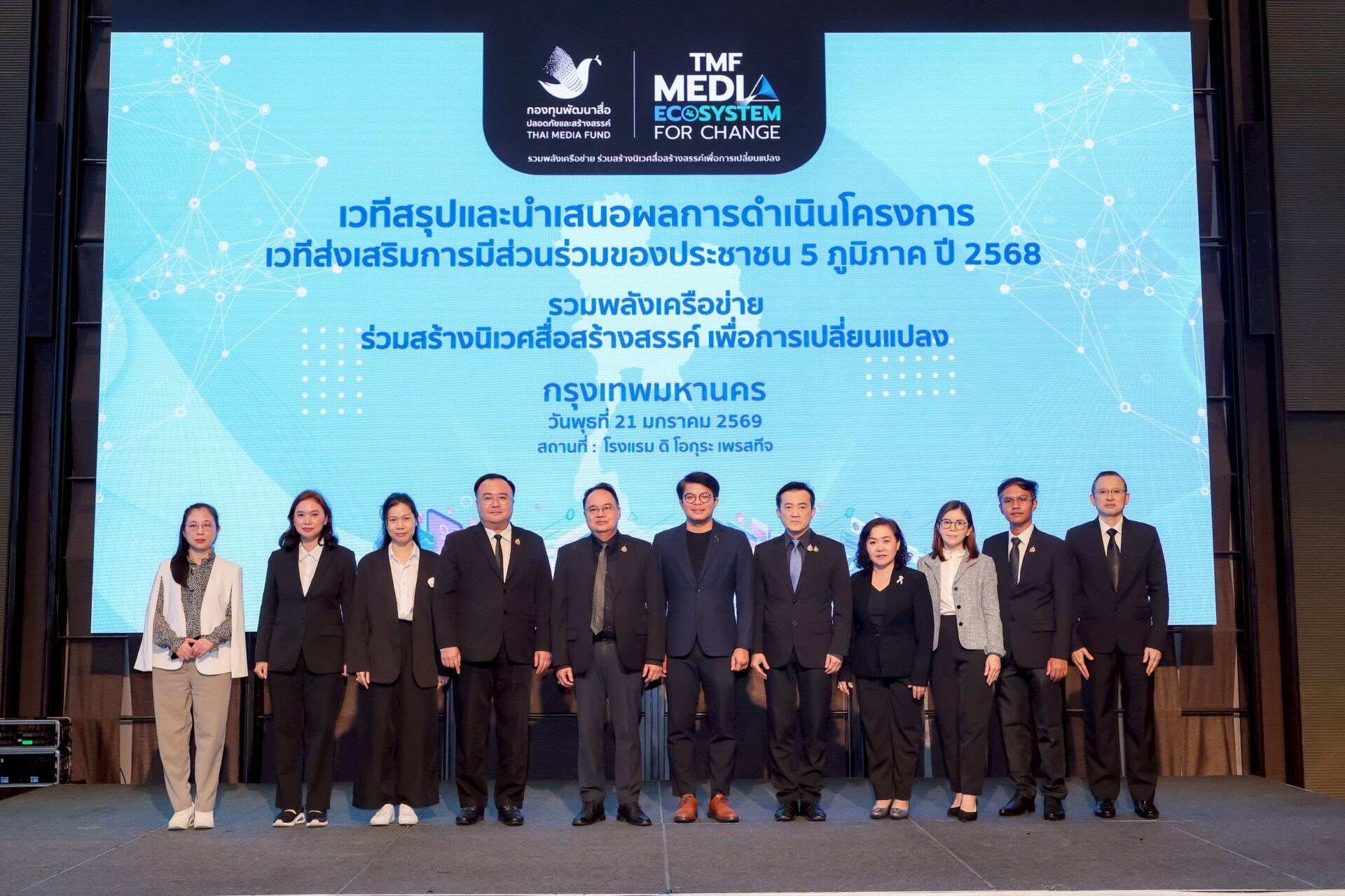กรุงเทพฯ – 21 มกราคม 2569 กองทุนพัฒนาสื่อปลอดภัยและสร้างสรรค์ (Thai Media Fund) เปิดเวทีใหญ่สังเคราะห์บทเรียนสำคัญระดับประเทศ ในงานสรุปผลการดำเนินโครงการเวทีส่งเสริมการมีส่วนร่วมของประชาชน ปี 2568 ภายใต้แนวคิด “Media Ecosystem for Change” ณ โรงแรม ดิ โอกุระ เพรสทีจ กรุงเทพฯ โดยนำผลสัมฤทธิ์จากการลงพื้นที่ระดมความเห็น 5 ภูมิภาค สรุปสถานการณ์สื่อไทย พร้อมประกาศปรับทิศทางการให้ทุนสู่รูปแบบ “ทุนเชิงพื้นที่” ลดขั้นตอนเอกสารเพื่อเปิดทางให้ชุมชนเข้าถึงง่ายขึ้น พร้อมเปิดเวทีเสวนา ดึงผู้บริหารสื่อรัฐ-เอกชน ร่วมระดมสมองฝ่าวิกฤตความเปลี่ยนแปลงของภูมิทัศน์สื่อ