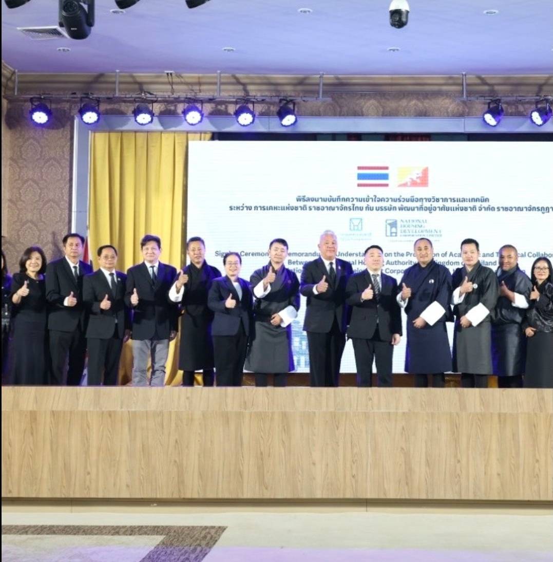 เมื่อวันที่ 26 มกราคม 2569 ผู้ช่วยศาสตราจารย์ ดร. อำนาจ จำรัสจรุงผล กรรมการการเคหะแห่งชาติ เป็นประธานในพิธีลงนามบันทึกความเข้าใจว่าด้วยความร่วมมือทางวิชาการและเทคนิค ระหว่างการเคหะแห่งชาติ กับบรรษัท พัฒนาที่อยู่อาศัยแห่งชาติ จำกัด (National Housing Development Corporation Limited : NHDCL) แห่งราชอาณาจักรภูฏาน โดยมี นายทวีพงษ์ วิชัยดิษฐ ผู้ว่าการการเคหะแห่งชาติ และ Mr. Rinchen Wangdi ประธานเจ้าหน้าที่บริหาร NHDCL ร่วมลงนาม พร้อมด้วย นางเตือนใจ คุณสมบัติ รองปลัดกระทรวงการพัฒนาสังคมและความมั่นคงของมนุษย์ ผู้บริหารการเคหะแห่งชาติ และผู้แทนจากหน่วยงานภาครัฐและภาคเอกชนเข้าร่วมงาน ณ การเคหะแห่งชาติ สำนักงานใหญ่ เขตบางกะปิ กรุงเทพฯ
