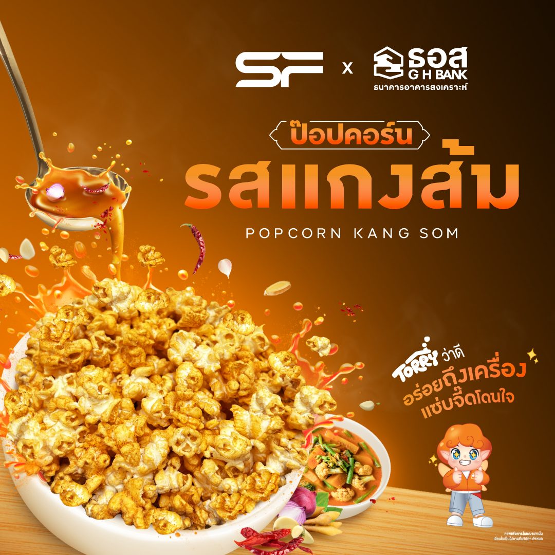 โรงภาพยนตร์ในเครือ เอส เอฟ ร่วมกับ ธนาคารอาคารสงเคราะห์ (ธอส.) เปิดตัวป๊อปคอร์นรสชาติใหม่ “ป๊อปคอร์นรสแกงส้ม” นำเอกลักษณ์ของอาหารไทยมาผสานเข้ากับไลฟ์สไตล์ความบันเทิง ของคนรุ่นใหม่อย่างลงตัว