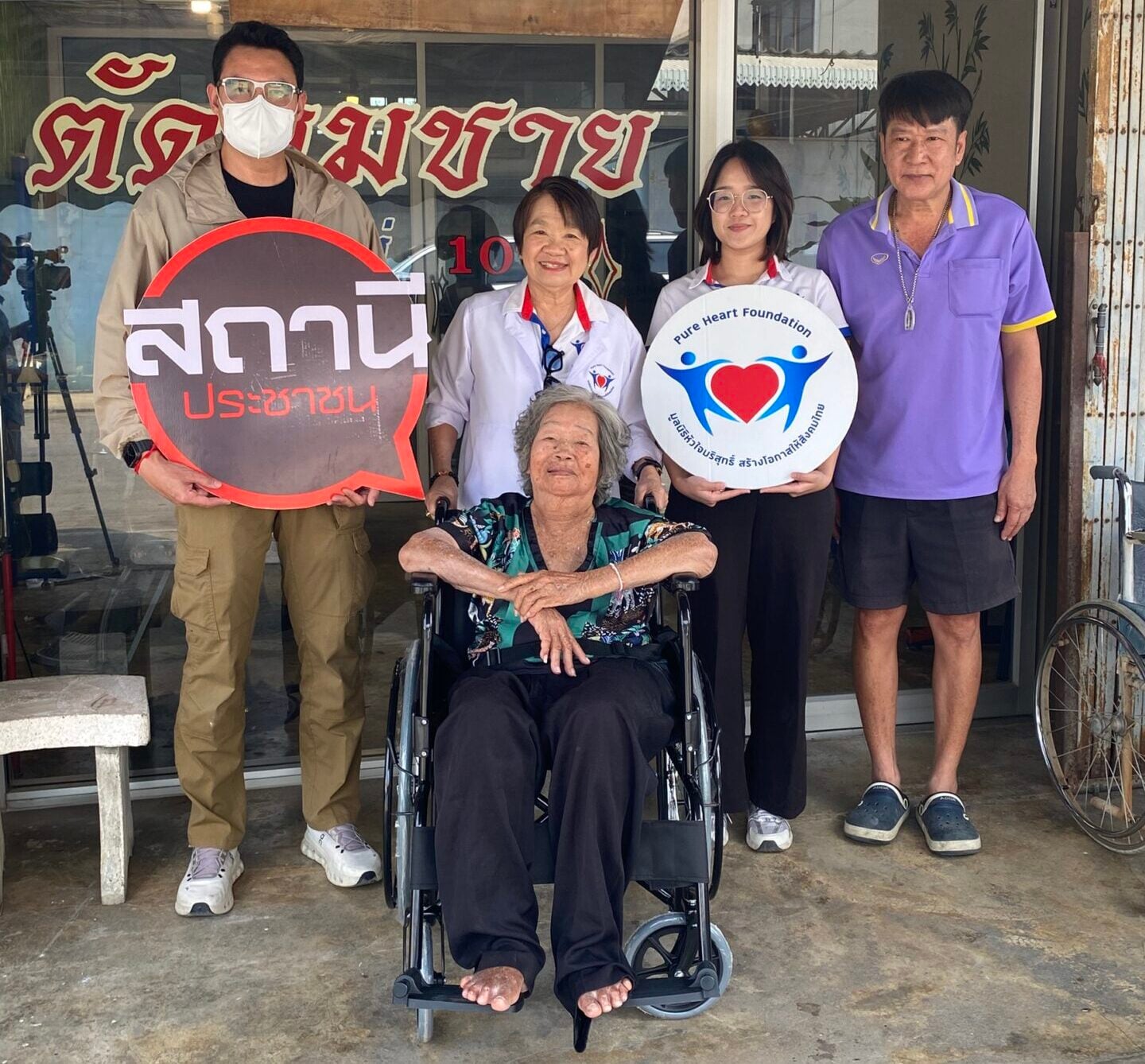วันที่ 22 ธันวาคม 2568 นางเธียรรัตน์ นะวะมะวัฒน์ ประธานมูลนิธิหัวใจบริสุทธิ์ พร้อมด้วยทีมงานรายการสถานีประชาชน ลงพื้นที่ตำบลบางรักพัฒนา อำเภอบางบัวทอง จังหวัดนนทบุรี เพื่อมอบรถเข็นวีลแชร์ให้แก่ นางประจวบ มีประเสริฐ อายุ 89 ปี และนางวิไลย สร้อยประเสริฐ อายุ 90 ปี ผู้สูงอายุที่ไม่สามารถเคลื่อนไหวด้วยตนเองได้