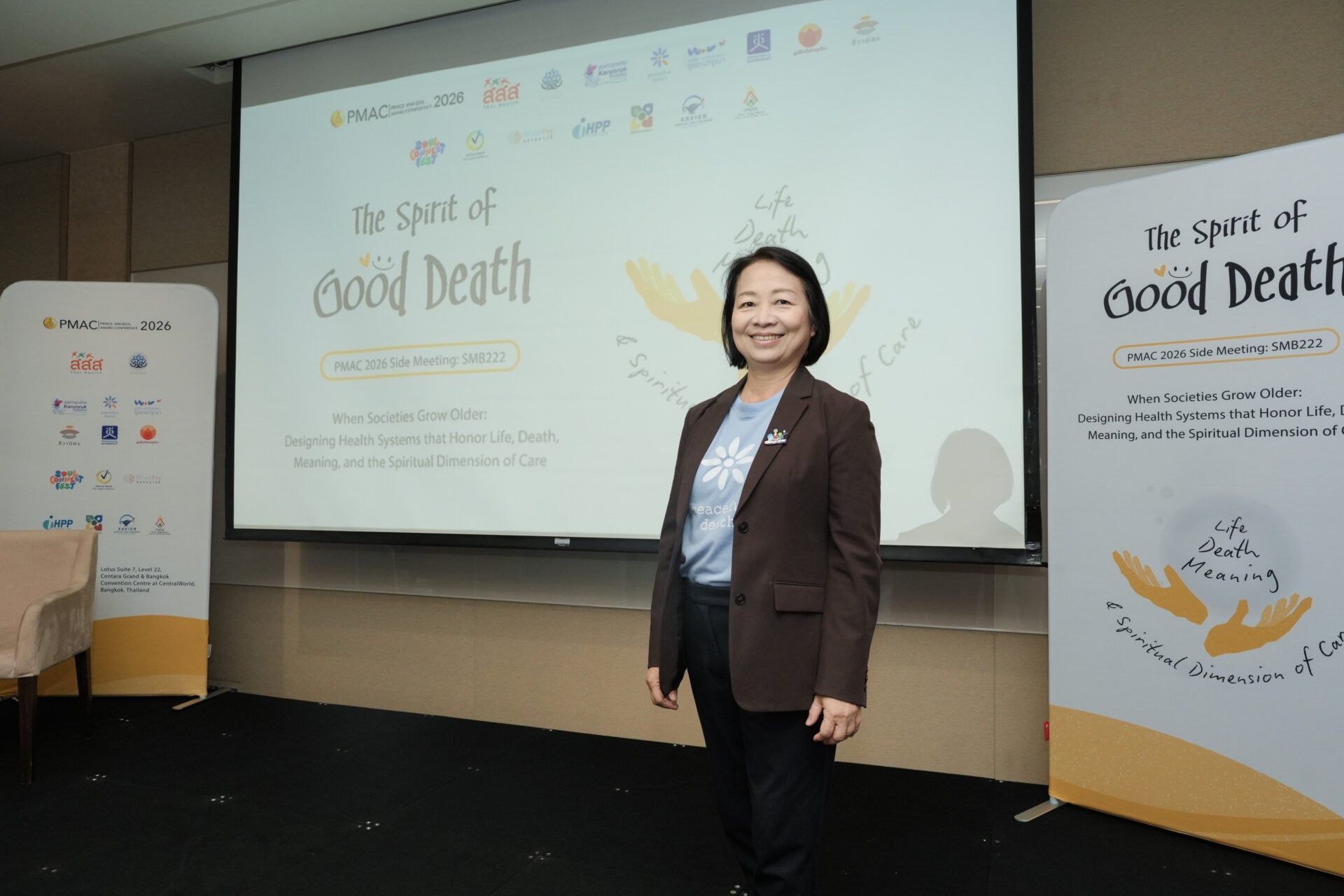 นางจารุปภา วะสี ผู้อำนวยการศูนย์ความรู้และประสานงานสุขภาวะทางปัญญา กล่าวว่า ศูนย์ความรู้และประสานงานสุขภาวะทางปัญญา ร่วมกับ สสส. นำประเด็น “Good death หรือการตายดี” มาเป็นโจทย์สำคัญในการหารือด้านการเตรียมความพร้อมเข้าสู่สังคมผู้สูงอายุของการประชุม PMAC ประจำปี 2569 เพื่อแลกเปลี่ยนแนวทางการพัฒนาระบบสาธารณสุขที่ทุกคนสามารถเข้าถึงการตายดีได้ ทุกภาคส่วนที่เกี่ยวข้องจำเป็นต้องมีความเข้าใจ เคารพศักดิ์ศรี และสิทธิในการตัดสินใจของทุกคนที่ต่างก็เป็นเจ้าของชีวิตของตนเอง เพราะการได้ตายอย่างดีควรเป็นสิทธิมนุษยชนพื้นฐานสำหรับทุกคนโดยเท่าเทียมและทั่วถึง นอกจากนี้ ภายในงานยังมีการจัดแสดงนิทรรศการ Pause Space by สติ Space พื้นที่ที่ชวนทุกคนได้กลับมาทบทวนหัวใจของตัวเอง ท่ามกลางการทำงานและความเร่งรีบในการใช้ชีวิตประจำวัน เปิดโอกาสให้สังเกตลมหายใจ ร่างกาย ความคิด และความรู้สึกของตัวเองโดยไม่ต้องตัดสิน ซึ่งการกลับมาอยู่กับปัจจุบันจะช่วยให้เกิดการรับรู้คุณค่าในตัวเองและใช้ชีวิตได้อย่างมีสติและเข้มแข็ง