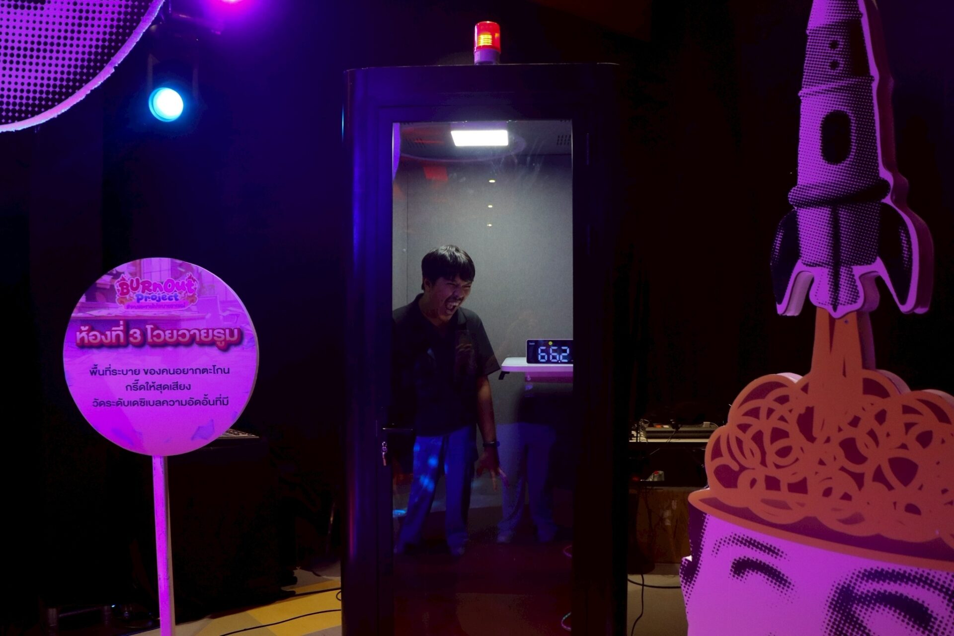 สำหรับกิจกรรม “MBK CENTER BURNOUT Project” #ระบมอะรายไประบายอารมณ์ เป็นนิทรรศการปลดปล่อยของคนทำงานที่เปิดโอกาสให้ได้ระบายความเครียดที่สะสมและปลดปล่อยอารมณ์ผ่าน 4 ห้องกิจกรรมที่ออกแบบมาเพื่อเป็นพื้นที่ที่ปลอดภัยและเข้าใจทุกอารมณ์ของผู้คน สามารถเลือก “ระบาย” ได้ตรงกับอารมณ์ของตัวเอง