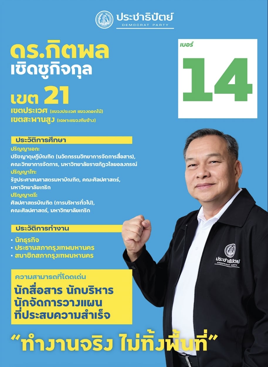 เขต 21 ดร.กิตพล เชิดชูกิจกุล กิม เบอร์ 14