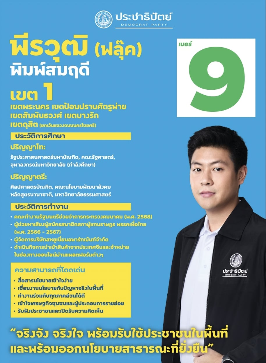 เขต 1 พีรวุฒิ พิมพ์สมฤดี ฟลุ๊ค เบอร์ 9