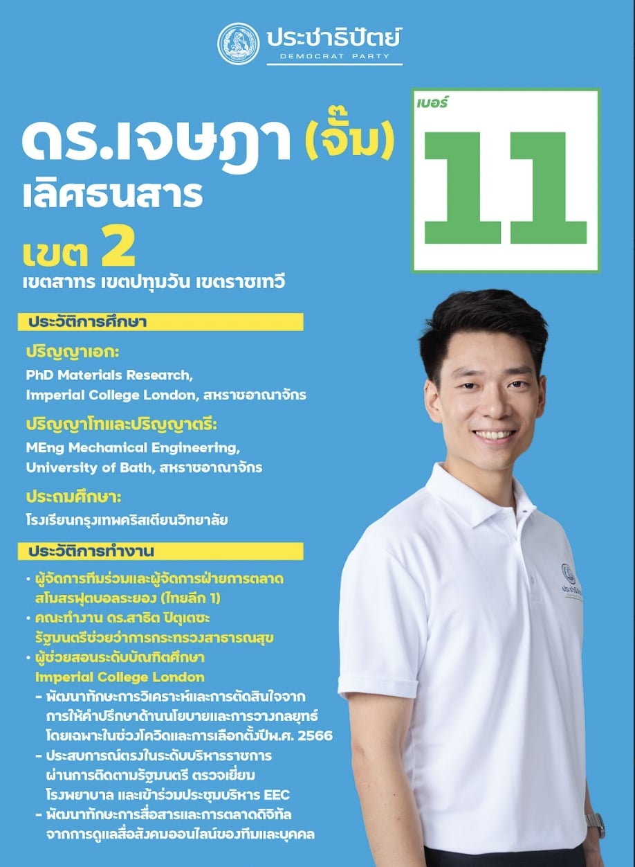 เปิดโปรไฟล์ 10 ตัวเต็ง ผู้สมัคร ส.ส.พรรคประชาธิปัตย์ กรุงเทพฯ