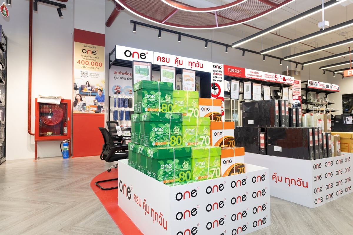 แบรนด์ ONE คัดสรรสินค้าที่เหมาะกับการใช้งานของธุรกิจ ครอบคลุมตั้งแต่เครื่องเขียน กระดาษถ่ายเอกสาร อุปกรณ์สำนักงาน เฟอร์นิเจอร์สำนักงาน และอุปกรณ์ทำความสะอาด ไปจนถึงกลุ่มสินค้าที่รองรับการใช้งานเฉพาะทางมากขึ้น อาทิ กระดานไวท์บอร์ด เครื่องทำลายเอกสาร ลิ้นชักเก็บเงิน บิลเงินสด อะคริลิคใส่สื่อการขาย รวมถึงบรรจุภัณฑ์อาหาร รองรับความต้องการของธุรกิจหลากหลายประเภท